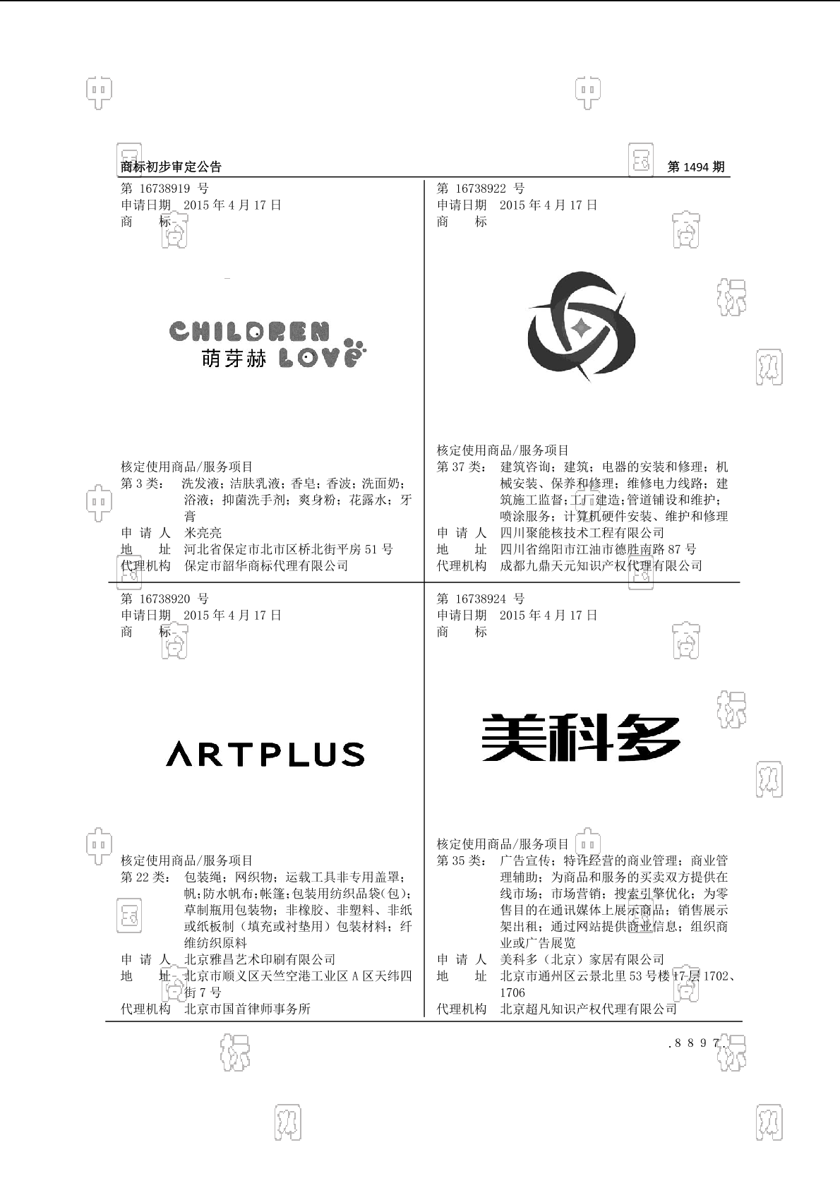 2015-04-17 商标注册申请 | 申请收文