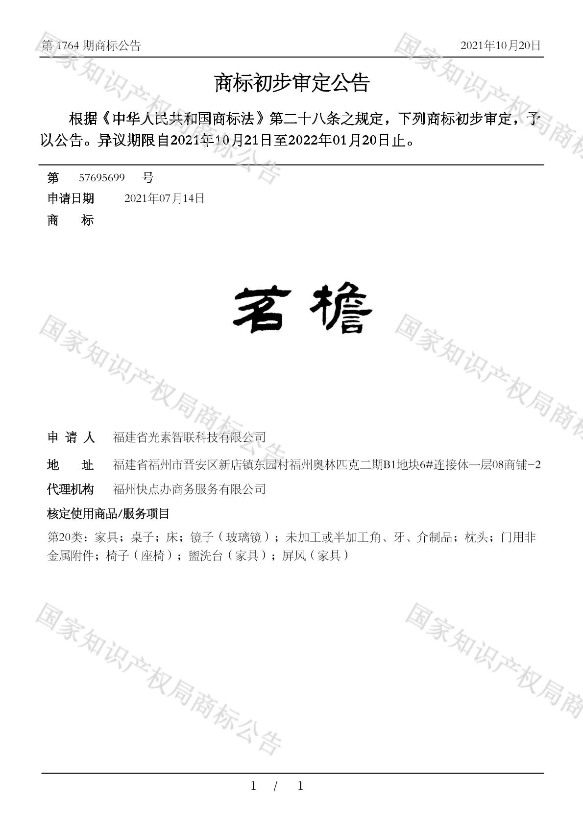 2021-07-14 商标注册申请 | 申请收文