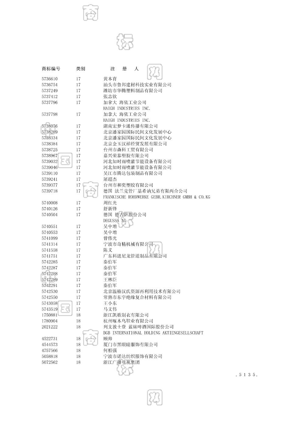 1701-未加工或半加工树胶;1702-非金属空气压缩管道装置;1703-农业用塑料膜;1703-半加工塑料物质;1703-塑料管;1704-非金属软管;1705-防潮建筑材料;1705-隔音材料;1706-绝缘材料;1707-防水包装物 - 1179