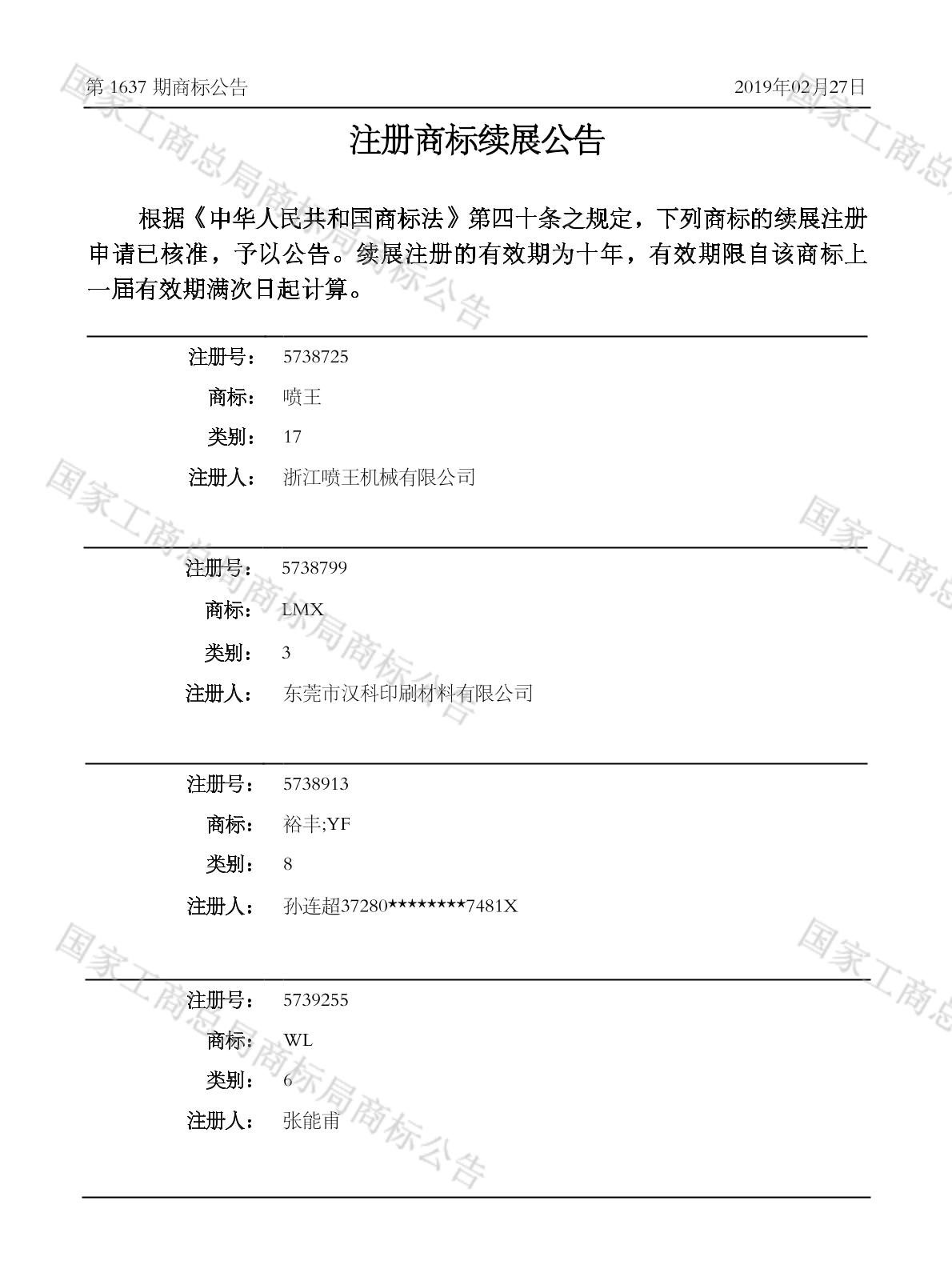 2019-02-15 商标续展 | 核准通知打印发送