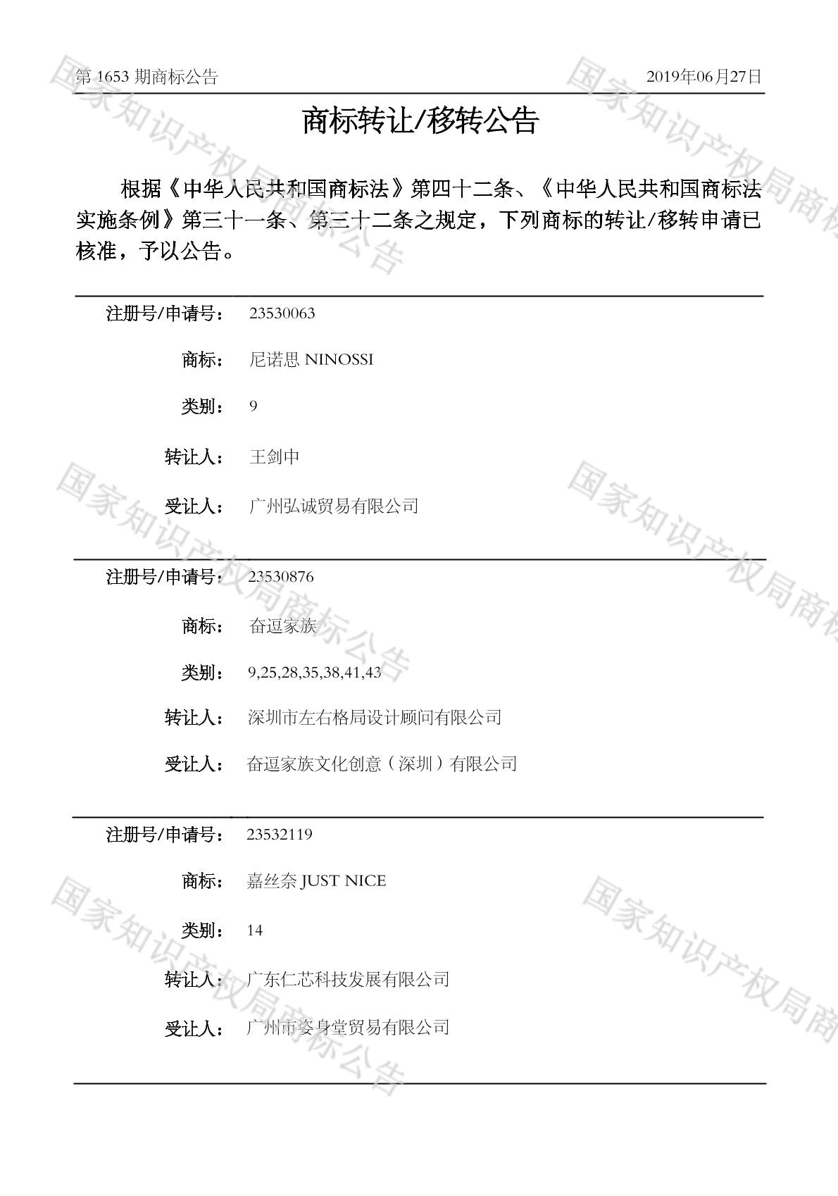 2019-06-22 商标转让 | 核准证明打印发送
