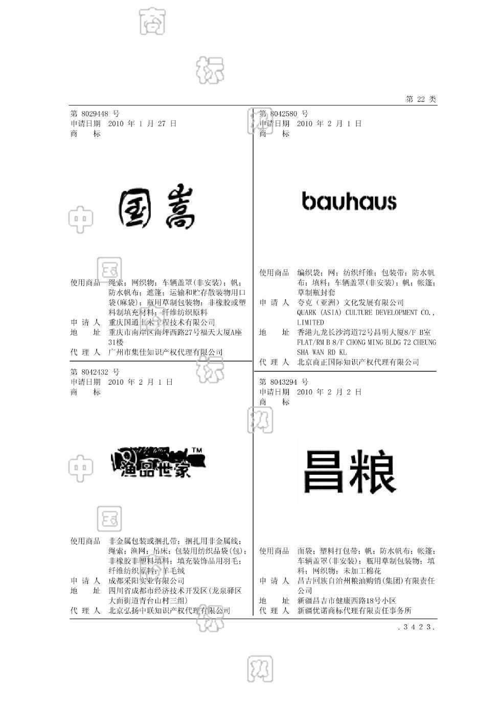 2201-包装带;2202-帆;2202-帐篷;2202-网;2202-车辆盖罩(非安装);2202-防水帆布;2203-编织袋;2203-草制瓶封套;2204-填料;2205-纺织纤维 - 1244