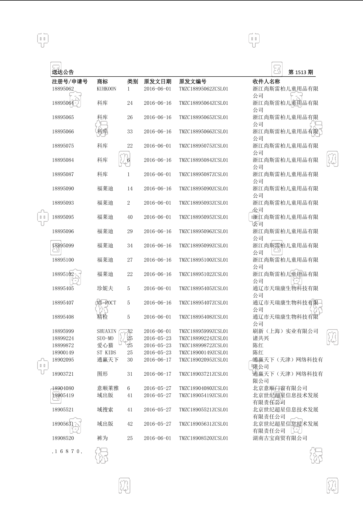 2016-07-14 商标注册申请 | 排版送达公告(商标注册申请受理通知书)
