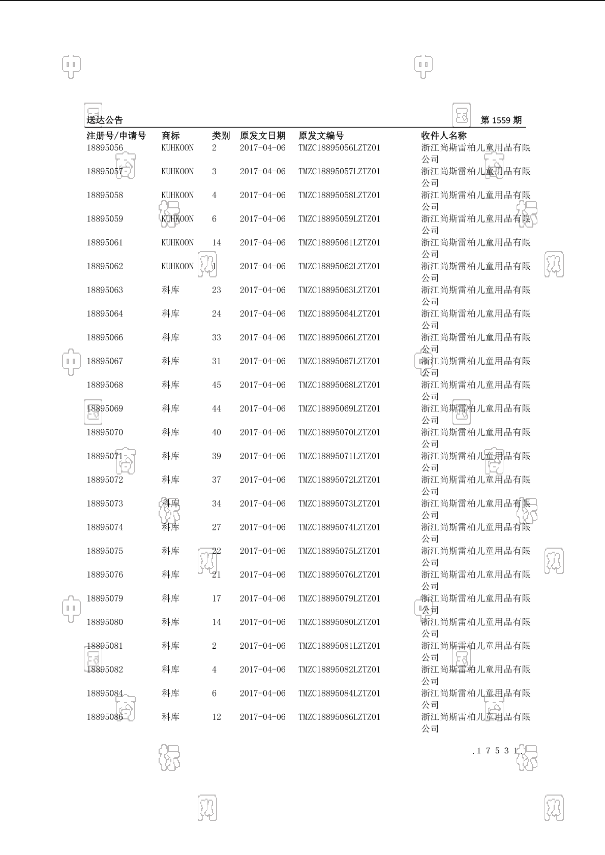 2017-07-14 商标注册申请 | 排版送达公告(领取商标注册证通知书)