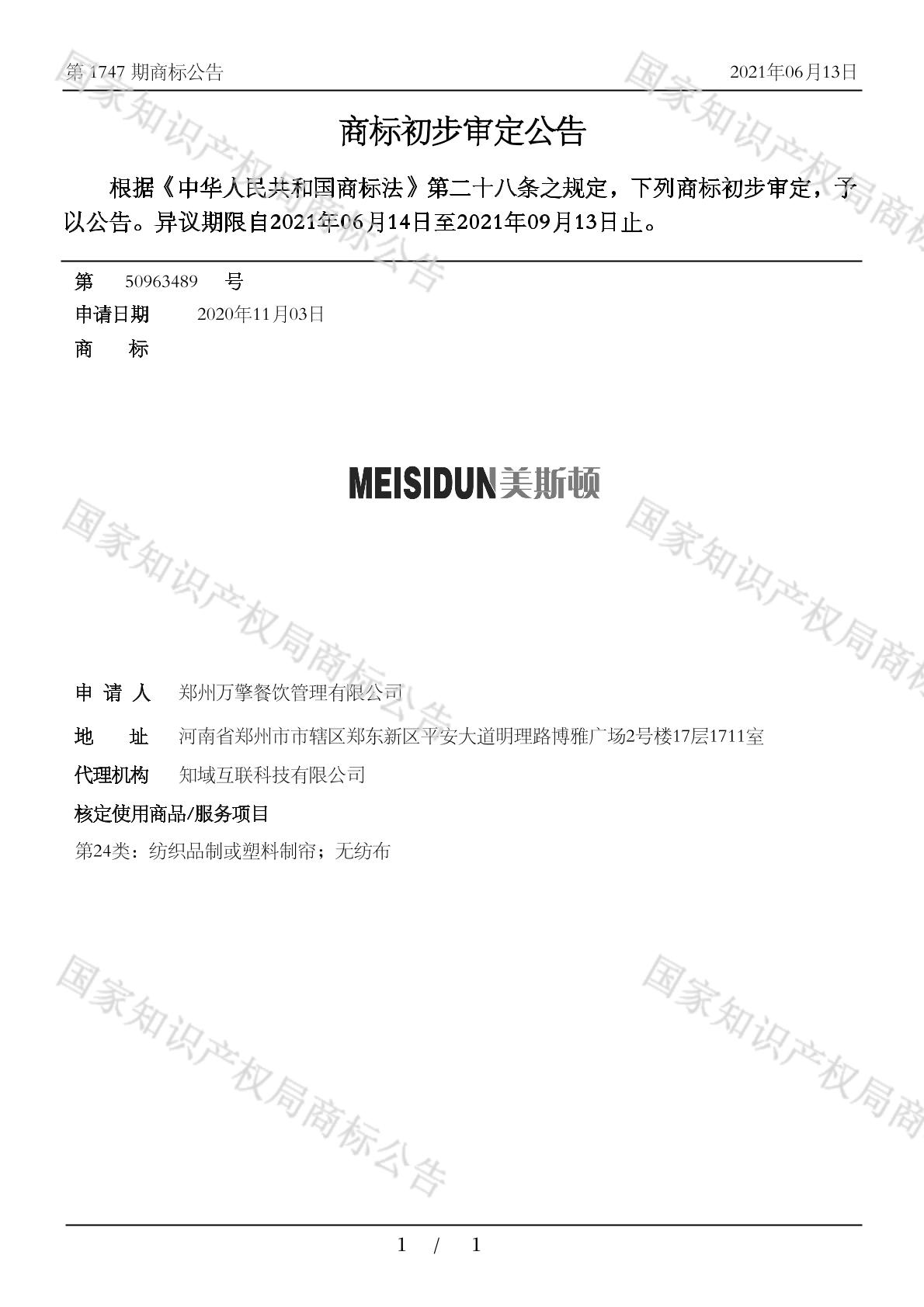 2401-布;2402-无纺布;2403-丝织、交织图画;2405-卸妆用布;2405-浴巾;2405-纺织品洗脸巾;2406-床单和枕套;2406-毛巾被;2406-被罩;2407-纺织品制或塑料制帘 - 1747