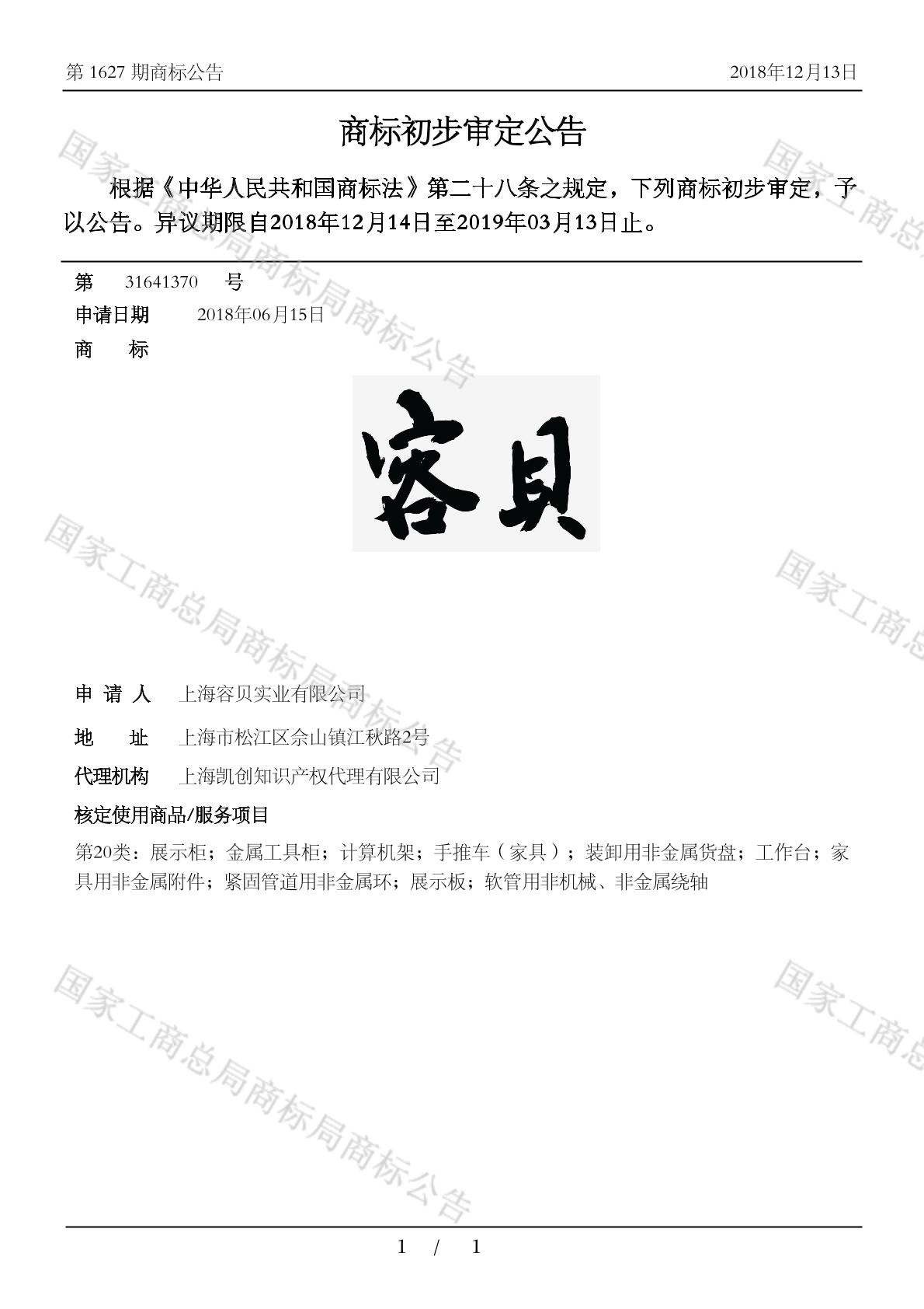 【容贝】商标详情