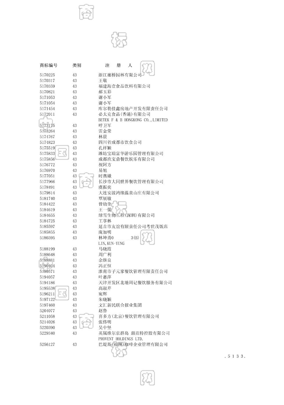 4302-提供野营场地设施;4303-养老院;4304-日间托儿所(看孩子);4305-动物寄养;4306-出租 椅子、桌子、桌布和玻璃器皿 - 1178