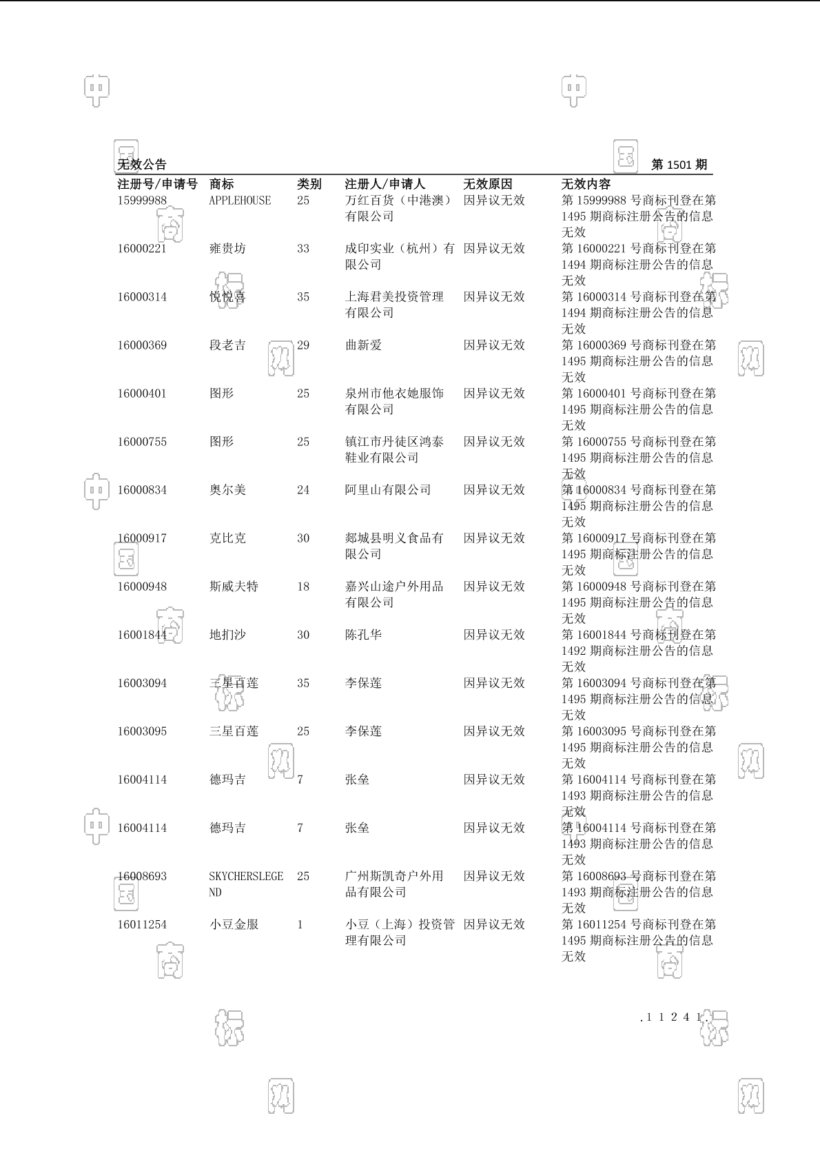 商标注册公告(一) 2016-03-13 第1495期 查看公告