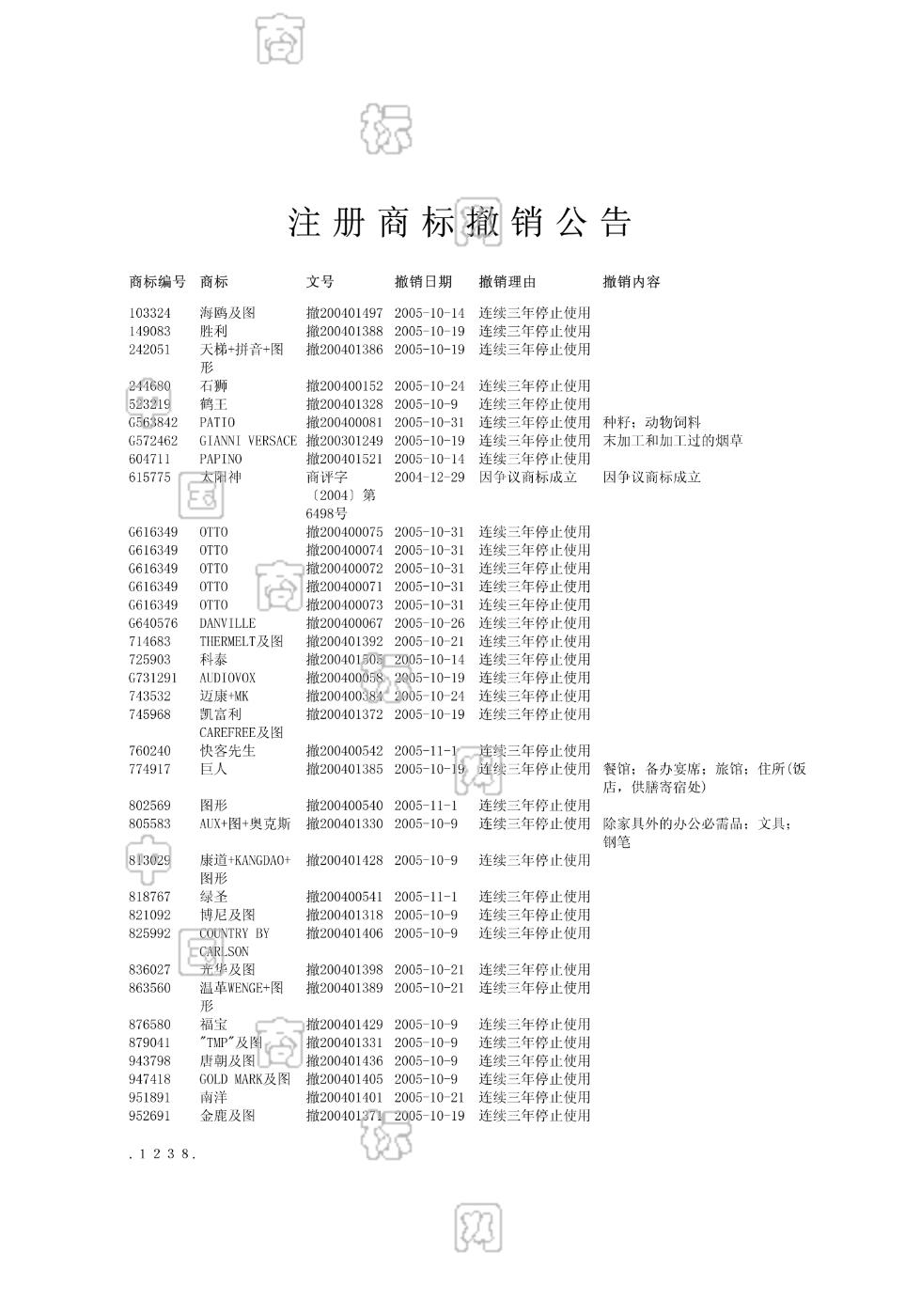 注册商标撤销公告 2006-02-28 第1013期 查看公告