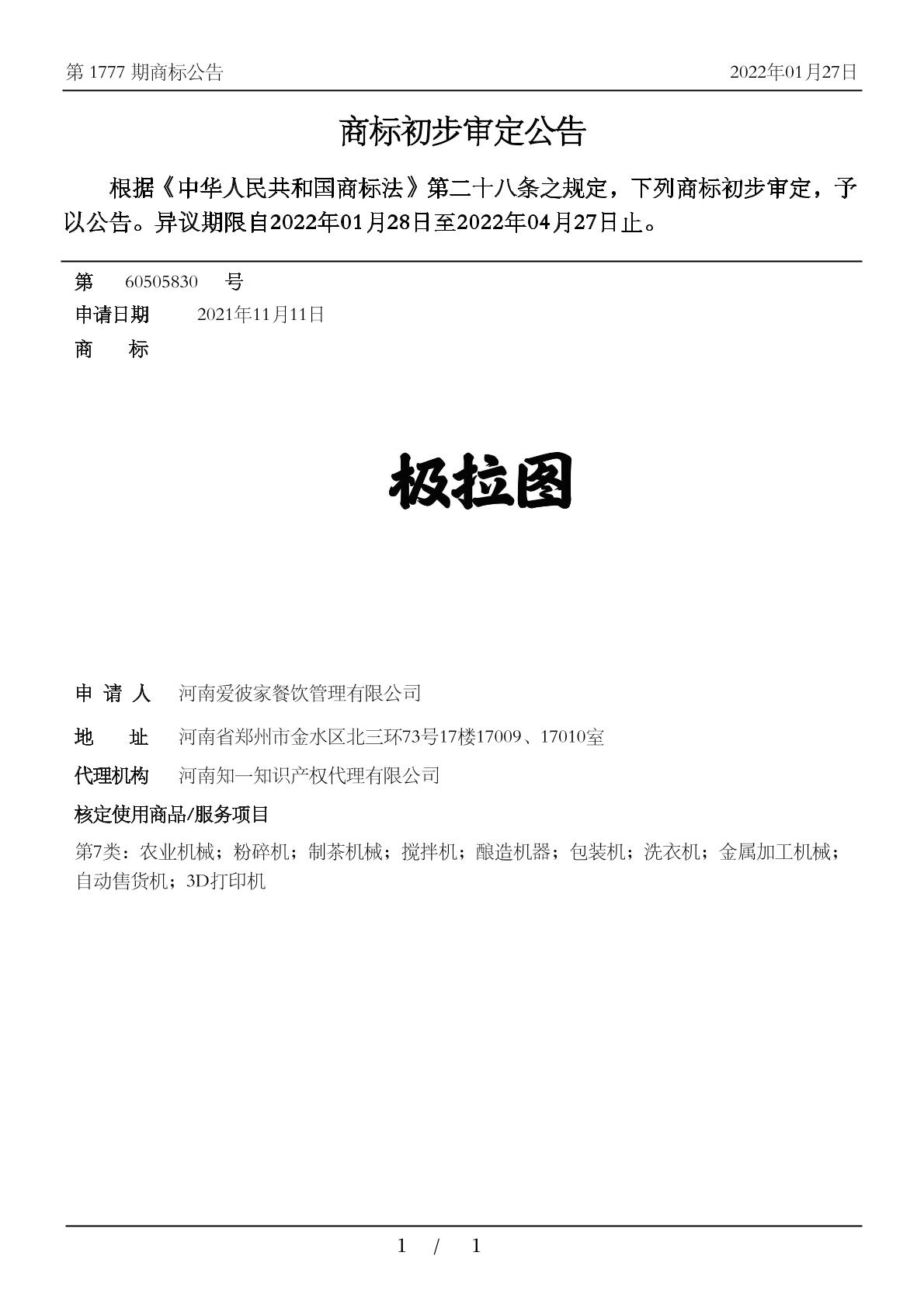 0701-农业机械;0702-粉碎机;0708-制茶机械;0709-搅拌机;0710-酿造机器;0721-包装机;0723-搅拌机;0724-洗衣机;0725-粉碎机;0733-搅拌机;0733-粉碎机;0735-金属加工机械;0736-金属加工机械;0742-金属加工机械;0752-粉碎机;0753-3D打印机;0753-自动售货机 - 1777