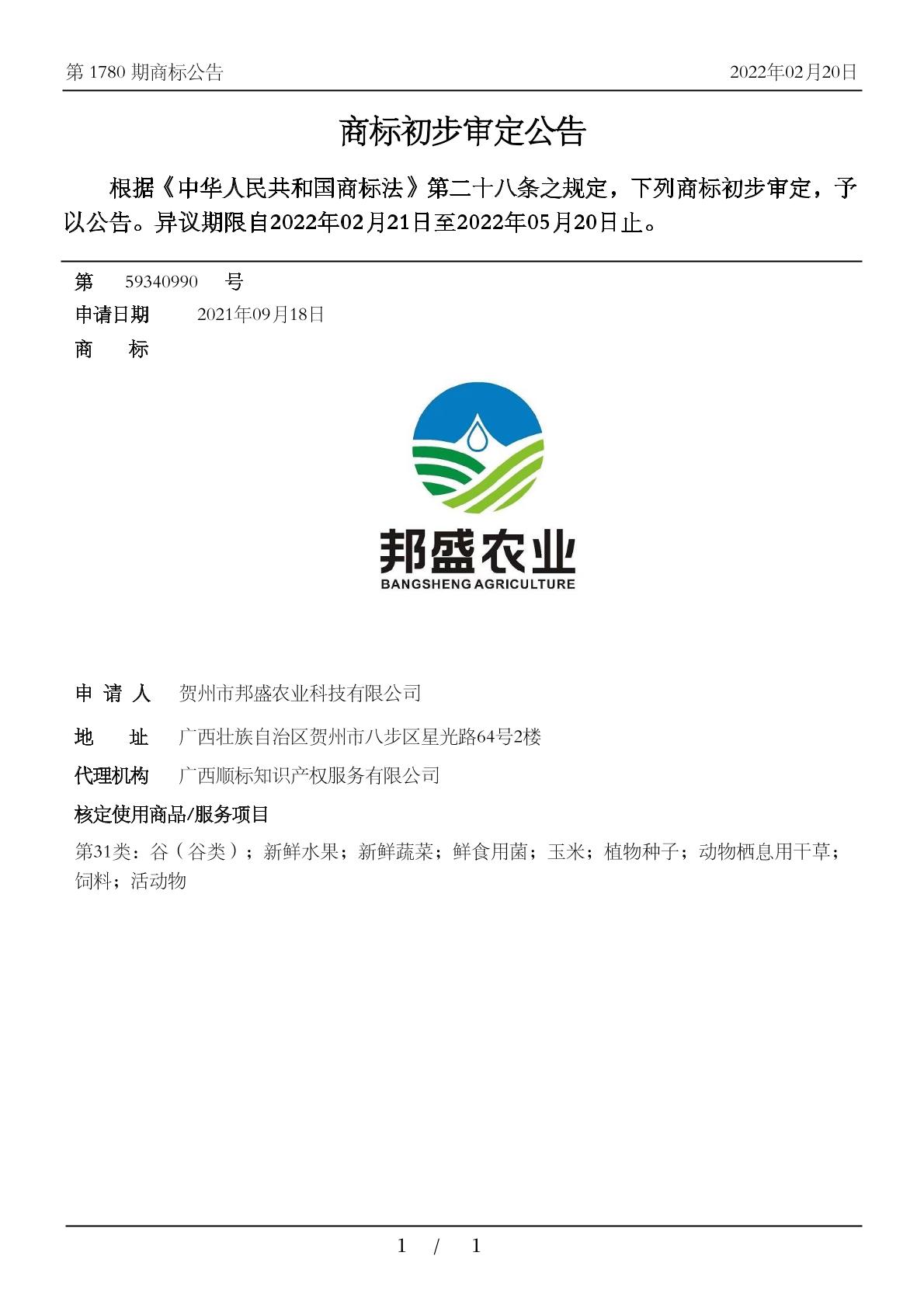 【邦盛农业 BANGSHENG AGRICULTURE】商标详情