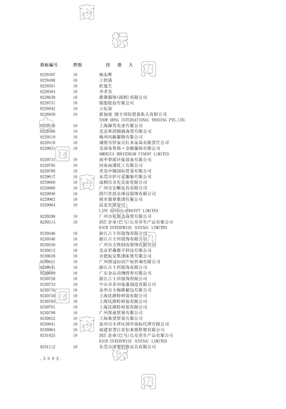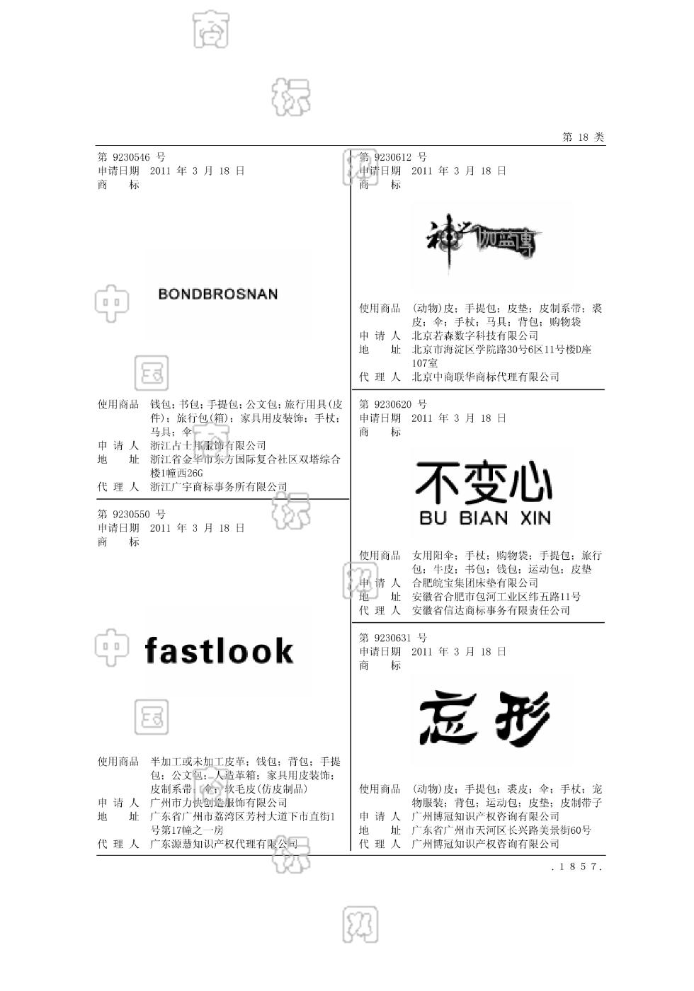 1801-(动物)皮;1802-手提包;1802-皮制系带;1802-皮垫;1802-背包;1802-购物袋;1803-裘皮;1804-伞;1805-手杖;1806-马具 - 1293
