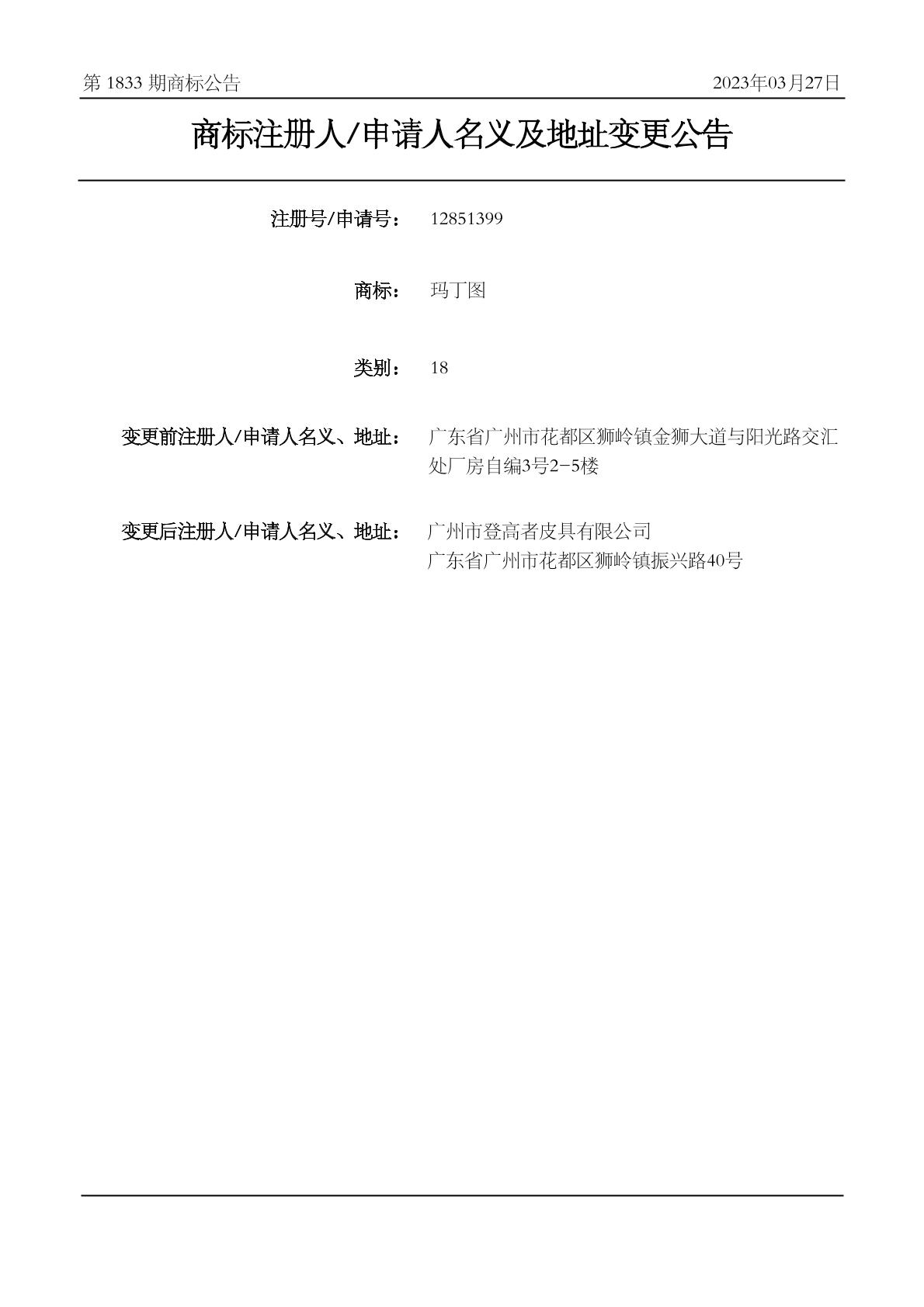 2023-03-02 变更商标申请人/注册人名义/地址 | 申请收文