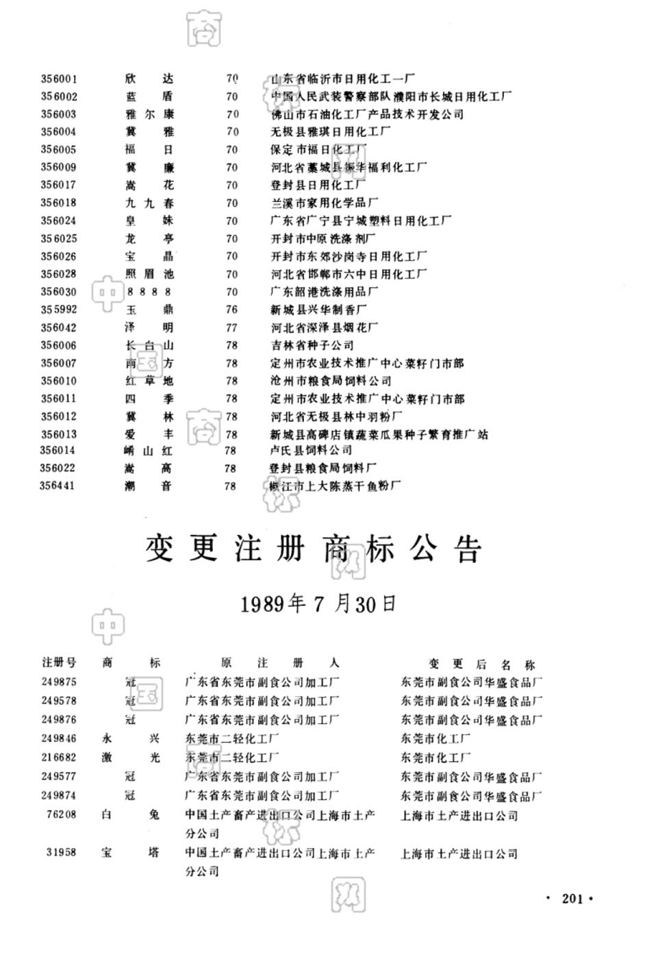 商标注册公告(一) 1989-07-30 第258期 查看公告