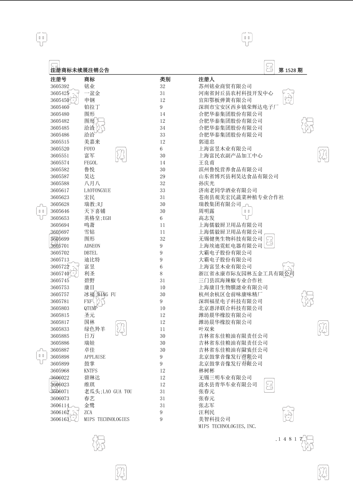 2016-11-21 期满未续展注销商标 | 排版未续展注销公告