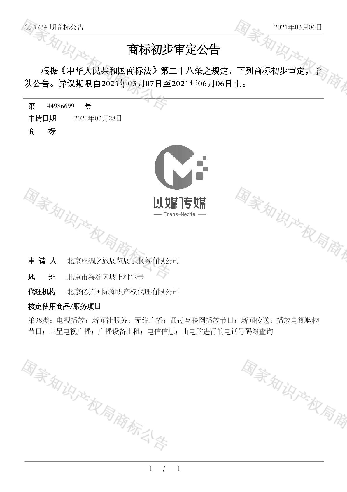 3801-卫星电视广播;3801-广播设备出租;3801-播放电视购物节目;3801-新闻传送;3801-新闻社服务;3801-无线广播;3801-电视播放;3801-通过互联网播放节目;3802-由电脑进行的电话号码簿查询;3802-电信信息 - 1734