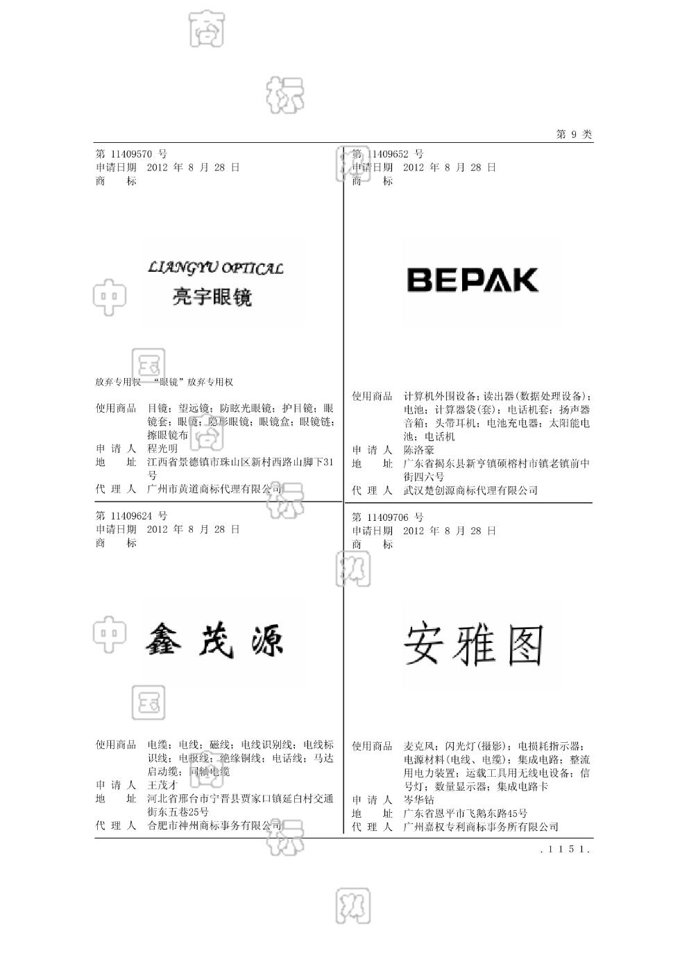 0901-集成电路卡;0902-数量显示器;0906-信号灯;0907-运载工具用无线电设备;0908-麦克风;0909-闪光灯(摄影);0910-电损耗指示器;0912-电源材料(电线、电缆);0913-集成电路;0914-整流用电力装置 - 1381