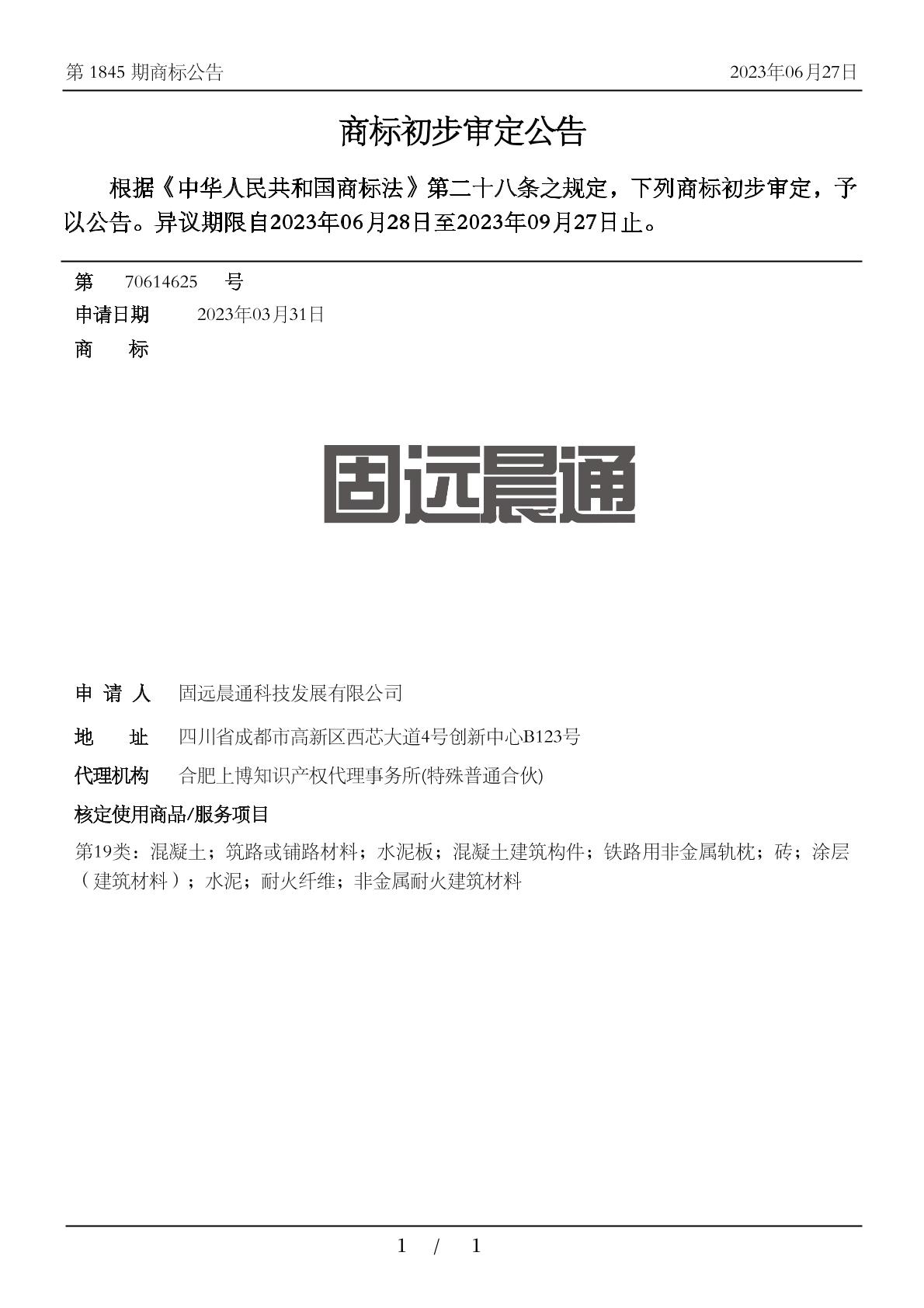1902-混凝土;1902-筑路或铺路材料;1904-水泥;1905-水泥板;1905-混凝土建筑构件;1906-砖;1907-耐火纤维;1907-非金属耐火建筑材料;1909-铁路用非金属轨枕;1912-涂层(建筑材料) - 1845