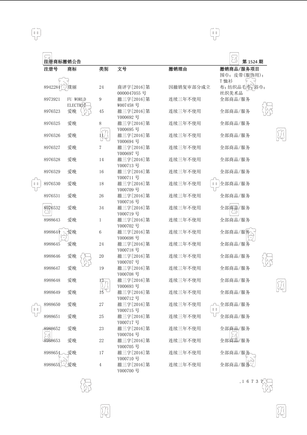 2016-03-21 撤销连续三年停止使用注册商标 | 排版送达公告(关于撤销连续三年未使用商标的决定)