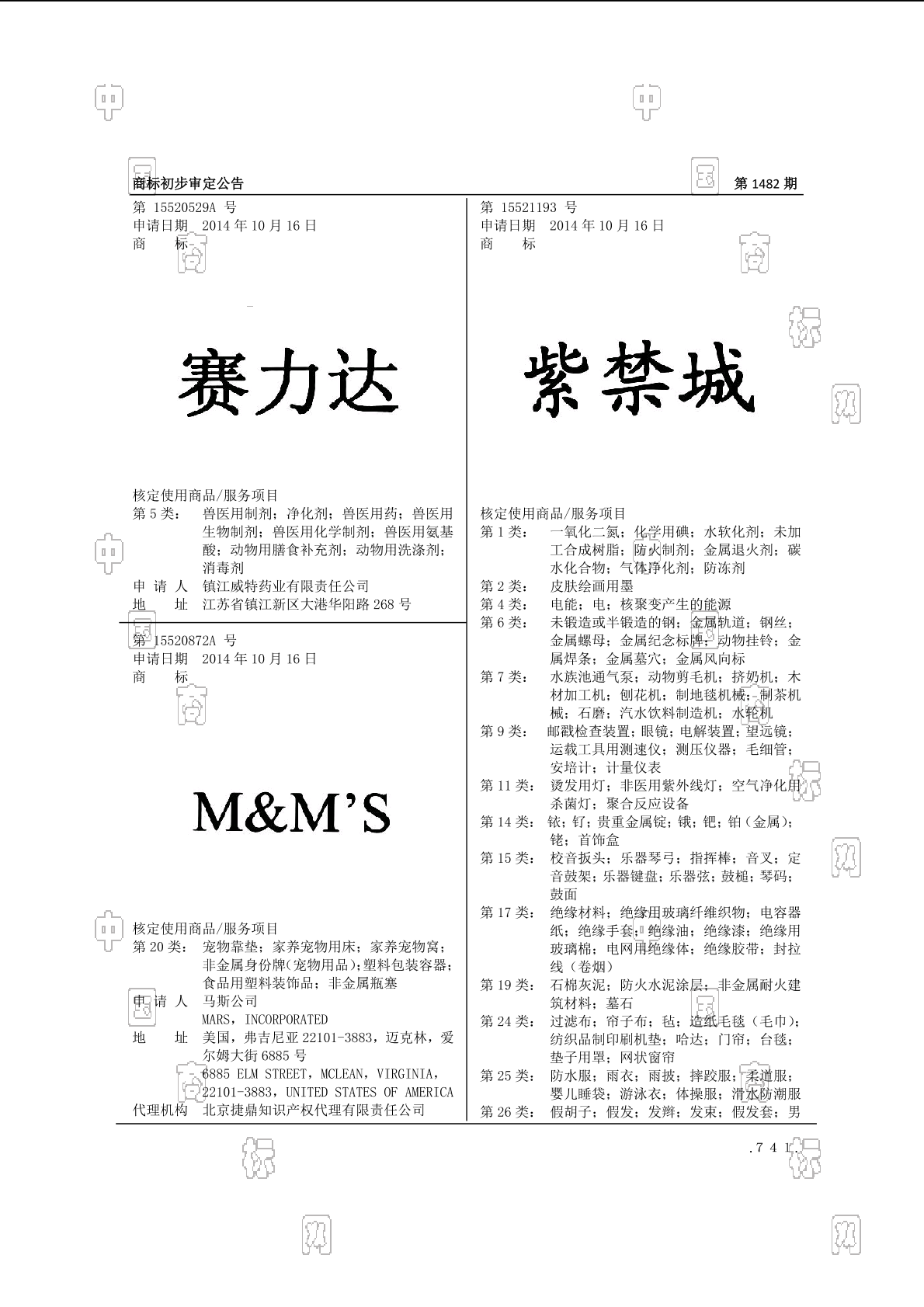 商标初步审定公告 2015-12-06 第1482期 查看公告