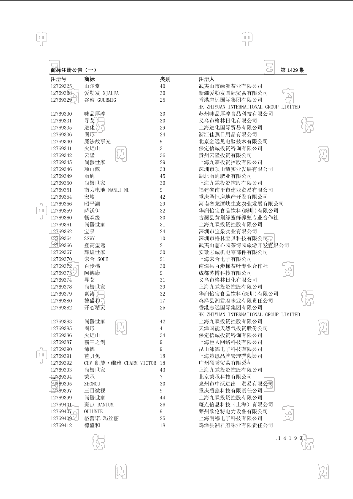 3101-树木;3102-燕麦;3103-自然花;3104-活动物;3105-新鲜水果;3106-新鲜蔬菜;3107-植物种子;3108-动物食品;3109-酿酒麦芽;3110-宠物用沙纸(垫窝用) - 1417