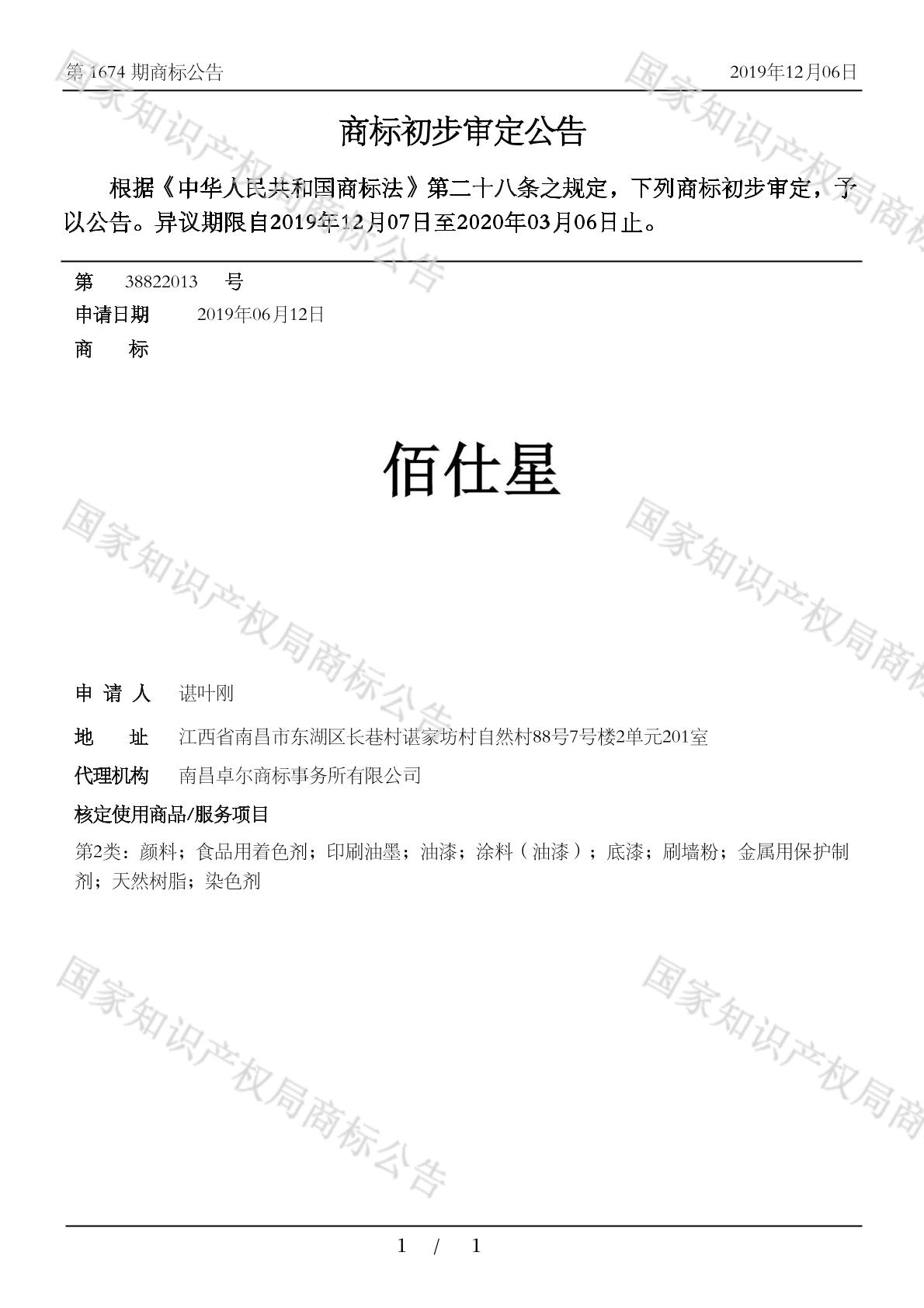 0201-染色剂;0202-颜料;0203-食品用着色剂;0204-印刷油墨;0205-刷墙粉;0205-底漆;0205-油漆;0205-涂料(油漆);0206-金属用保护制剂;0207-天然树脂 - 1674