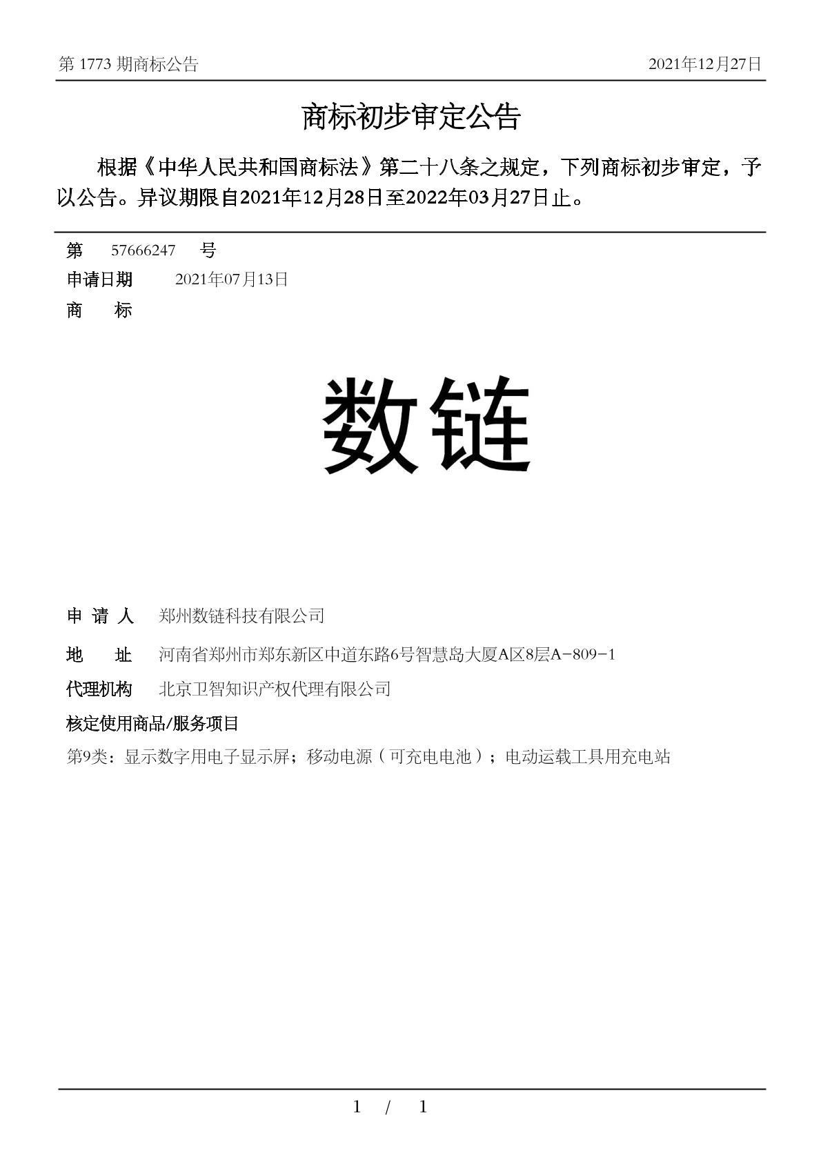 0901-可下载的手机应用软件;0901-可下载的计算机程序;0902-人脸识别设备;0906-电子公告牌;0907-首饰形式的通信设备;0908-安全监控机器人;0910-实验室机器人;0913-显示数字用电子显示屏;0922-电动运载工具用充电站;0922-移动电源(可充电电池) - 1773