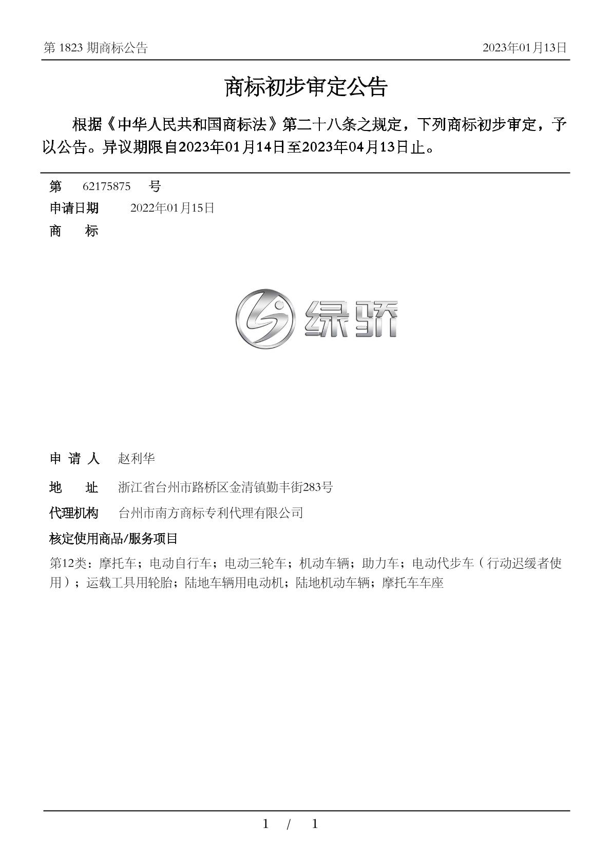1201-机动车辆;1201-陆地机动车辆;1202-摩托车;1202-摩托车车座;1202-机动车辆;1202-陆地机动车辆;1202-陆地车辆用电动机;1204-助力车;1204-机动车辆;1204-电动三轮车;1204-电动代步车(行动迟缓者使用);1204-电动自行车;1204-陆地机动车辆;1208-运载工具用轮胎 - 1823