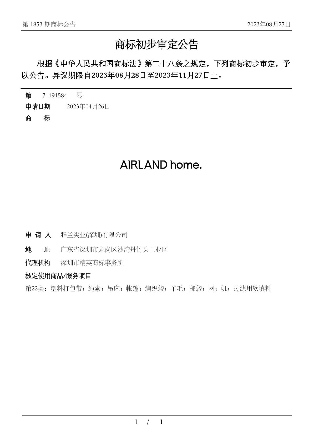 2201-塑料打包带;2201-绳索;2202-吊床;2202-帆;2202-帐篷;2202-网;2203-编织袋;2203-邮袋;2204-过滤用软填料;2205-羊毛 - 1853
