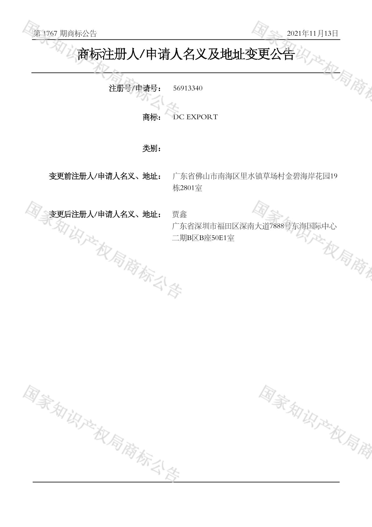 商标注册人/申请人名义及地址变更公告 2021-11-13 第1767期 查看公告