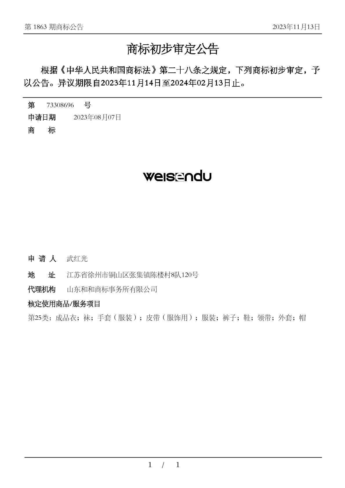 2501-外套;2501-成品衣;2501-服装;2501-裤子;2502-服装;2503-服装;2504-服装;2505-服装;2507-鞋;2508-帽;2509-袜;2510-手套(服装);2511-领带;2512-皮带(服饰用) - 1863