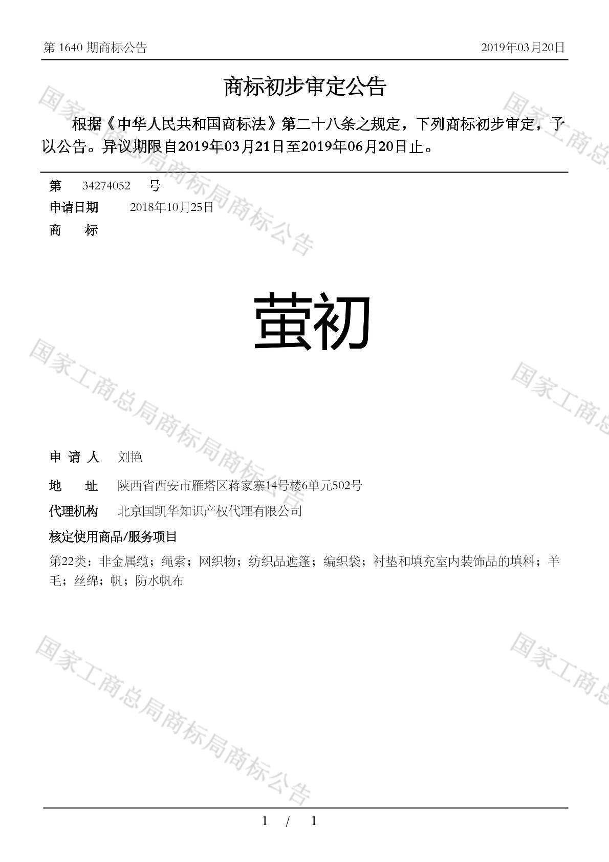 2201-绳索;2201-非金属缆;2202-帆;2202-纺织品遮篷;2202-网织物;2202-防水帆布;2203-编织袋;2204-衬垫和填充室内装饰品的填料;2205-丝绵;2205-羊毛 - 1640