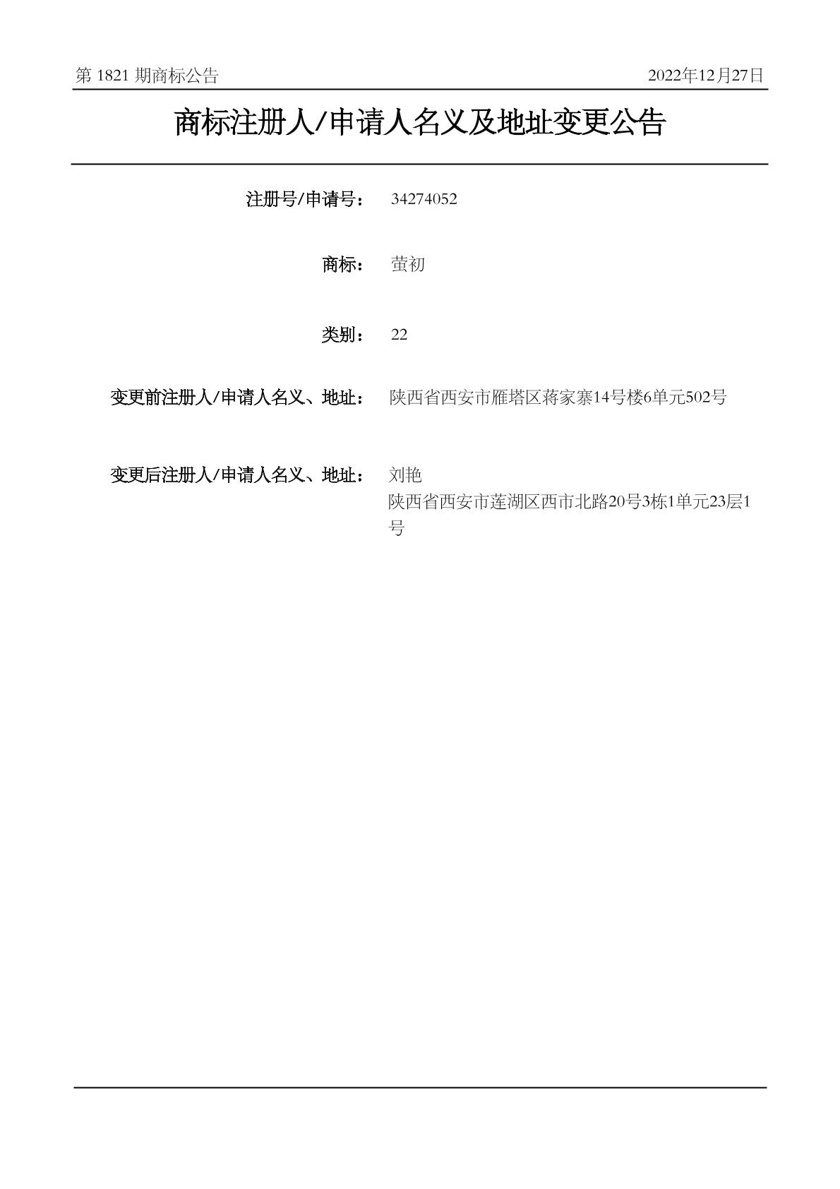 2022-12-20 变更商标申请人/注册人名义/地址 | 核准证明打印发送