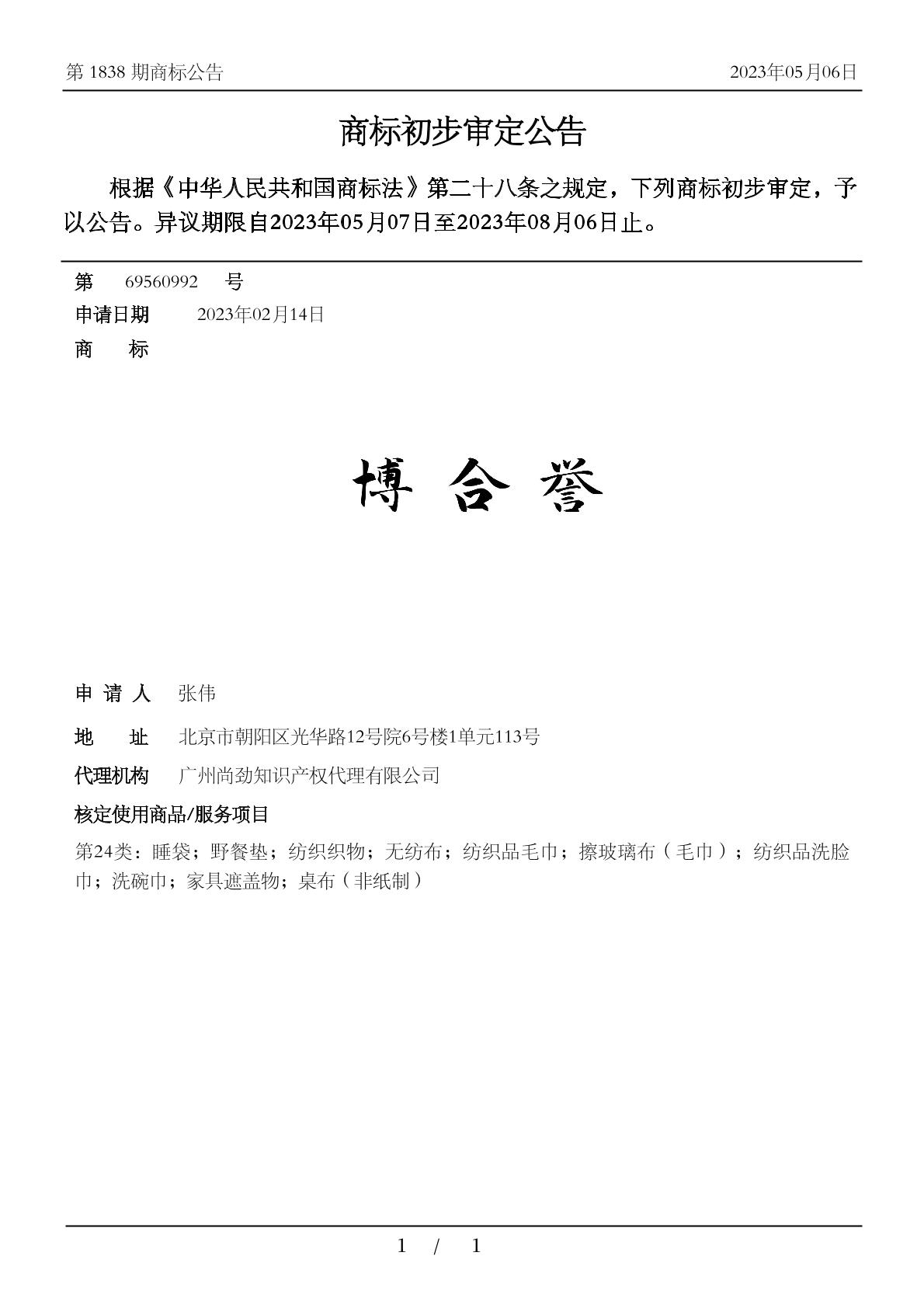 2401-纺织织物;2402-无纺布;2405-擦玻璃布(毛巾);2405-洗碗巾;2405-纺织品毛巾;2405-纺织品洗脸巾;2406-睡袋;2407-家具遮盖物;2407-桌布(非纸制);2407-野餐垫 - 1838