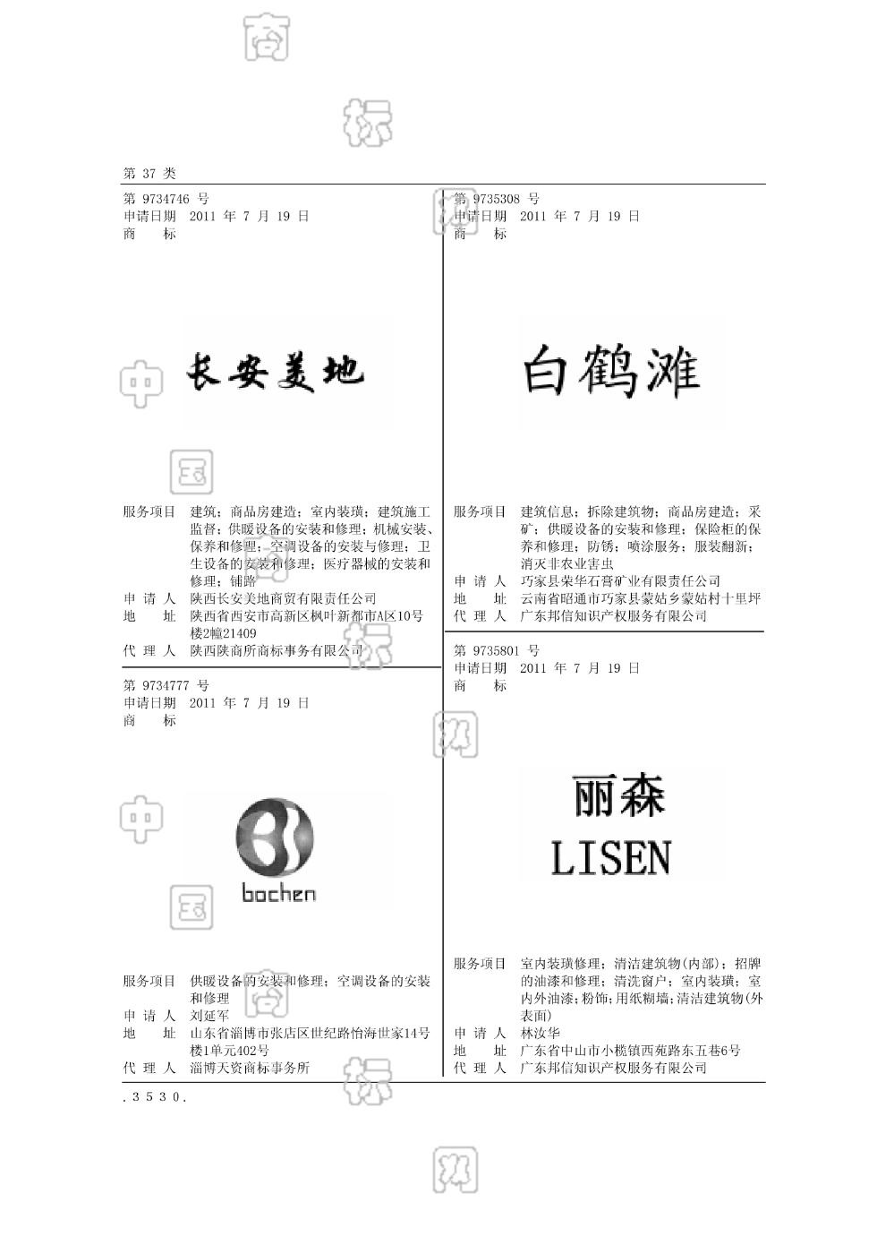 3704-室内外油漆;3704-室内装璜;3704-室内装璜修理;3704-招牌的油漆和修理;3704-清 洁建筑物(内部);3704-清洁建筑物(外表面);3704-清洗窗户;3704-用纸糊墙;3704-粉饰 - 1315