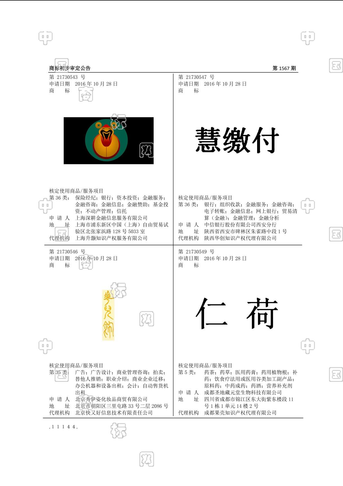 2016-10-28 商标注册申请 | 申请收文