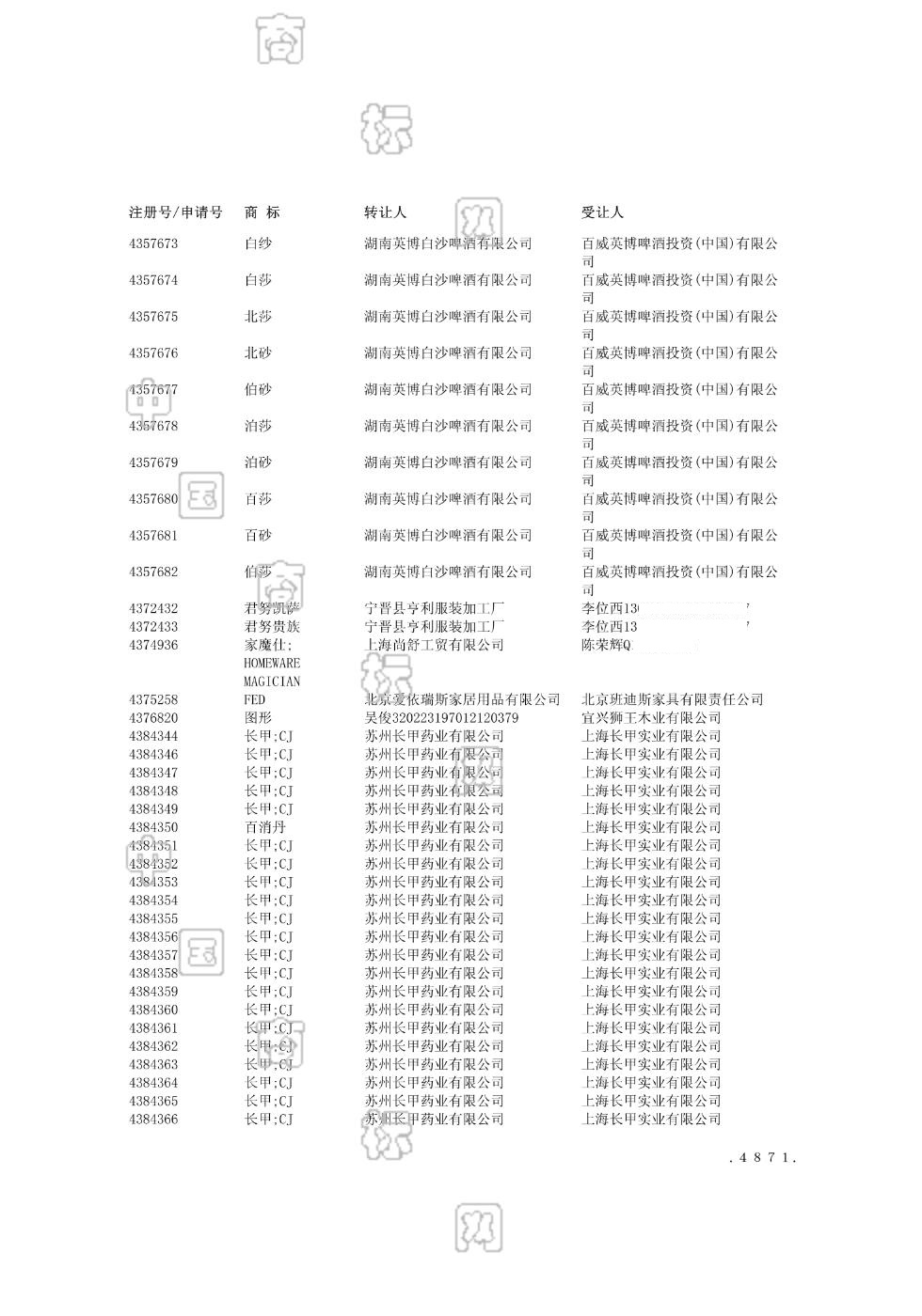 商标转让移转公告 2011-04-20 第1260期 查看公告