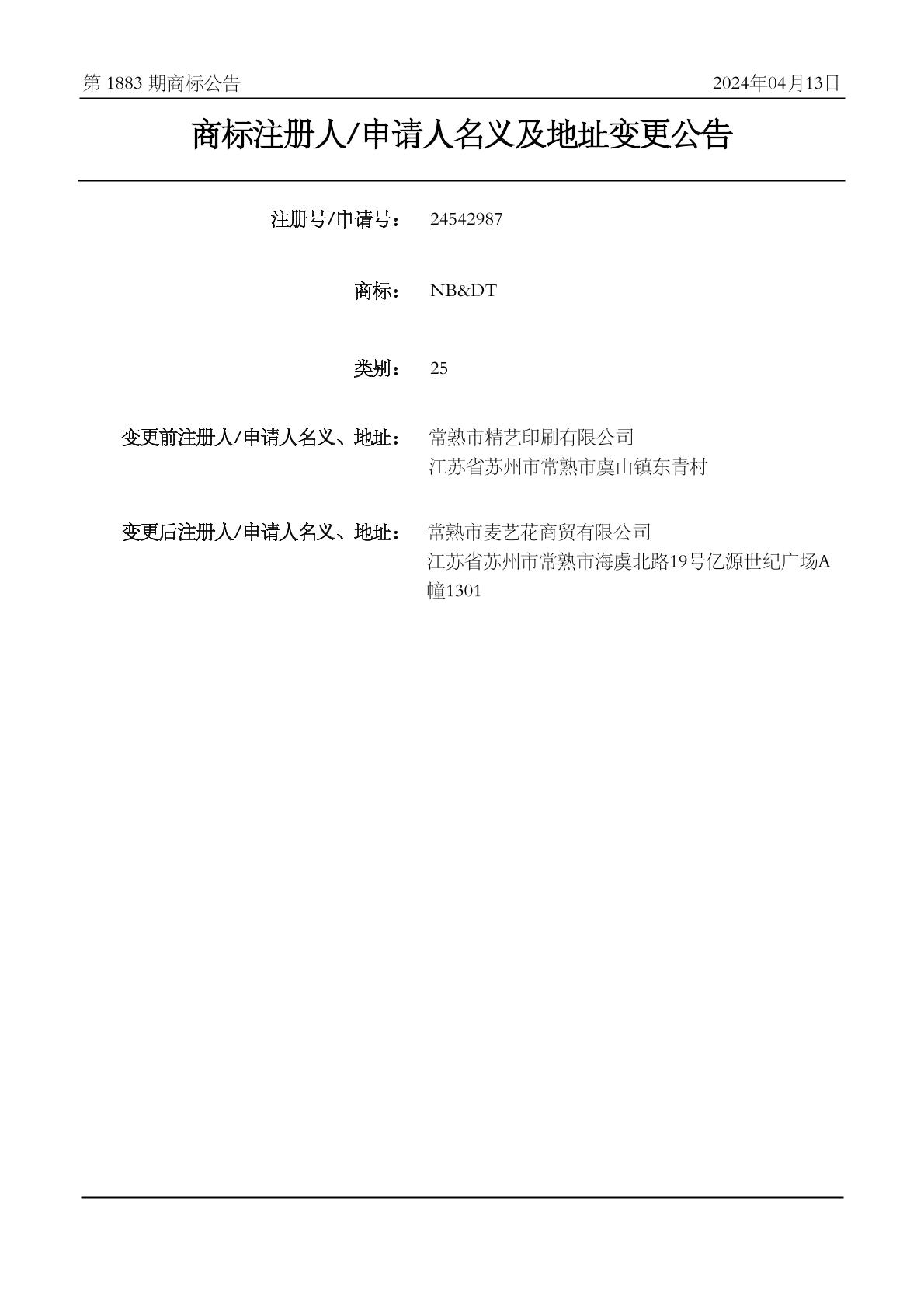 2024-04-18 变更商标申请人/注册人名义/地址 | 核准证明打印发送