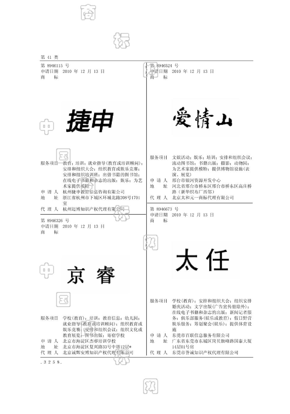 4101-培训;4101-学校(教育);4101-寄宿学校;4101-就业指导(教育或培训顾问);4101-幼儿园;4101-教育信息;4102-安排和组织会议;4102-组织教育或娱乐竞赛;4102-组织文化或教育展览;4104-图书出版 - 1288