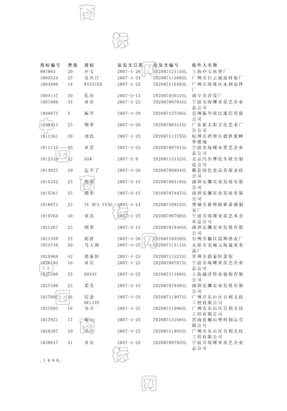 2007-07-23 商标转让 | 后台打印转让核准证明
