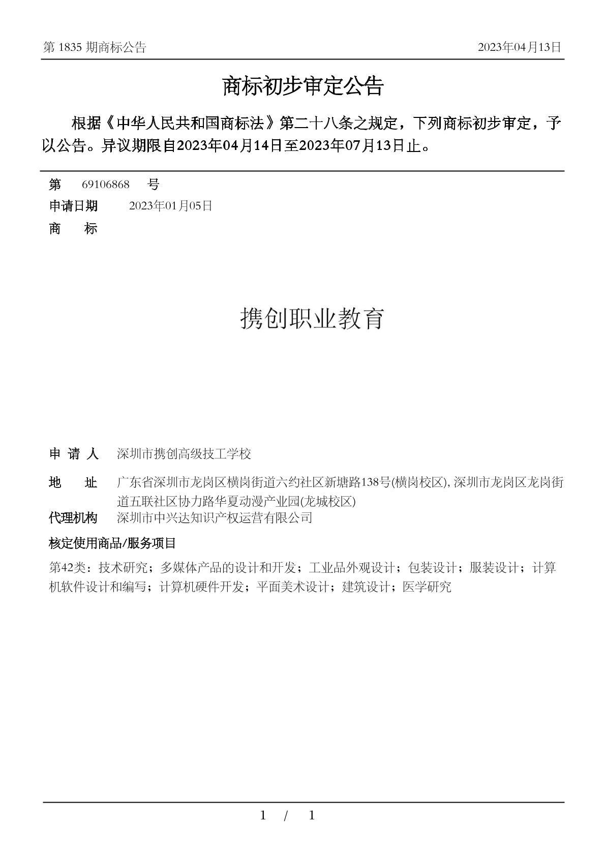 4209-多媒体产品的设计和开发;4209-技术研究;4212-医学研究;4216-包装设计;4216-多媒体产品的设计和开发;4216-工业品外观设计;4217-建筑设计;4218-服装设计;4220-多媒体产品的设计和开发;4220-计算机硬件开发;4220-计算机软件设计和编写;4227-平面美术设计 - 1835