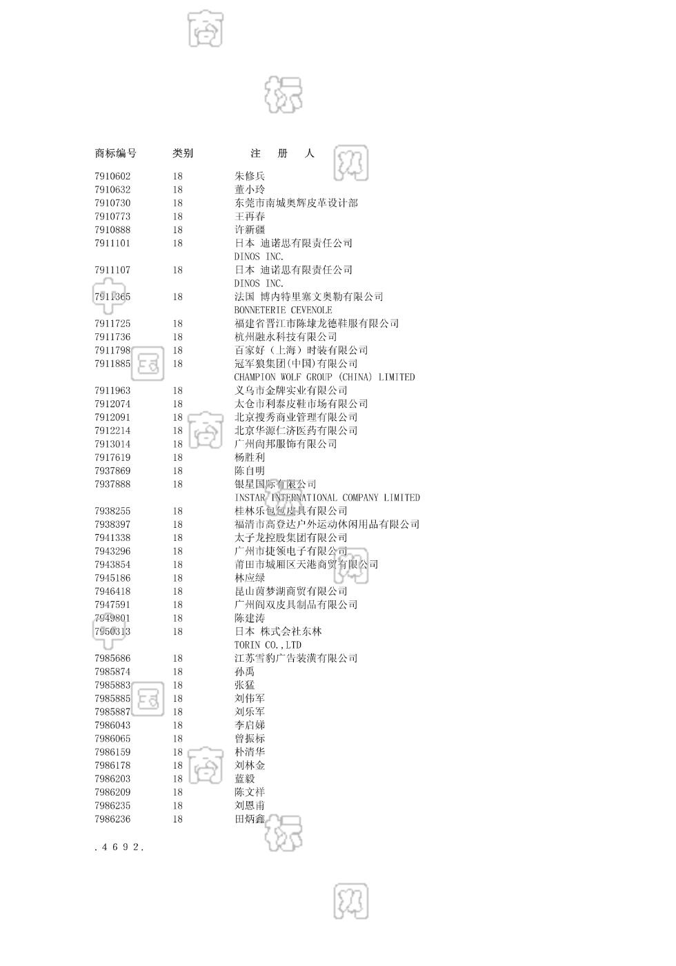 1801-(动物)皮;1802-旅行包(箱);1802-毛皮制覆盖物;1802-皮制带子;1802-背包;1802-钱包;1803-兽皮;1804-伞;1805-手杖;1806-系狗皮带 - 1238