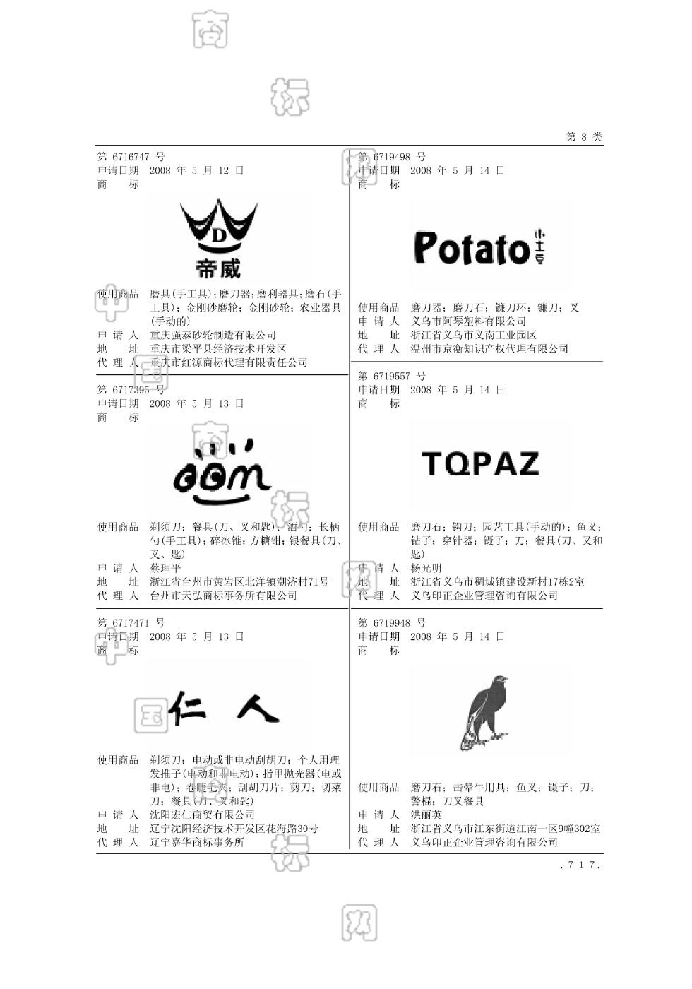 2008-05-14 商标注册申请 | 申请收文