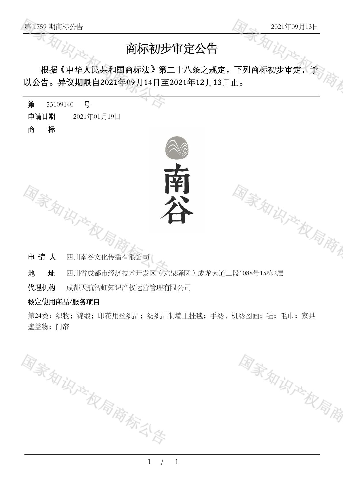 2401-印花用丝织品;2401-织物;2401-锦缎;2403-手绣、机绣图画;2403-纺织品制墙上挂毯;2404-毡;2405-毛巾;2406-被子;2407-家具遮盖物;2407-门帘 - 1759