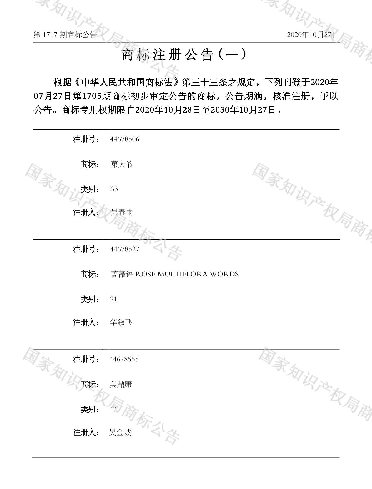 4301-住所代理(旅馆、供膳寄宿处);4301-疗养院餐饮供应服务;4301-茶馆;4301-酒店提供的餐饮供应服务;4301-餐厅;4301-餐馆;4301-饭店;4302-会议室出租;4303-养老院;4304-托儿所服务 - 1705