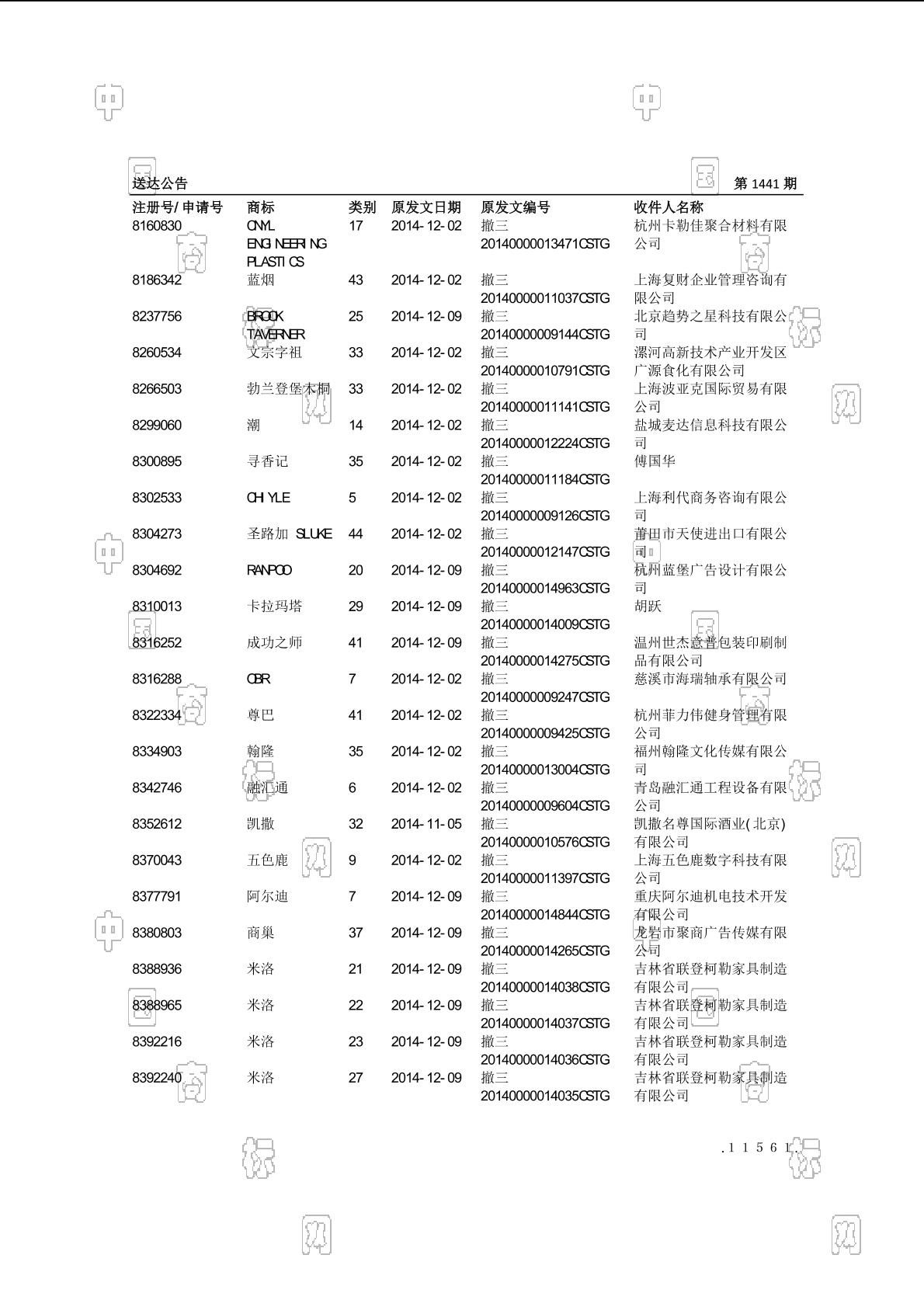 注册商标撤销公告 2015-10-06 第1474期 查看公告