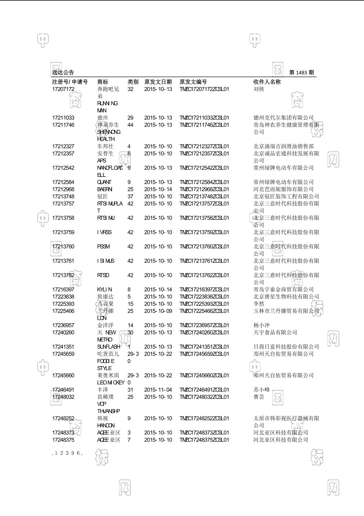 2015-12-15 商标注册申请 | 排版送达公告(商标注册申请受理通知书)
