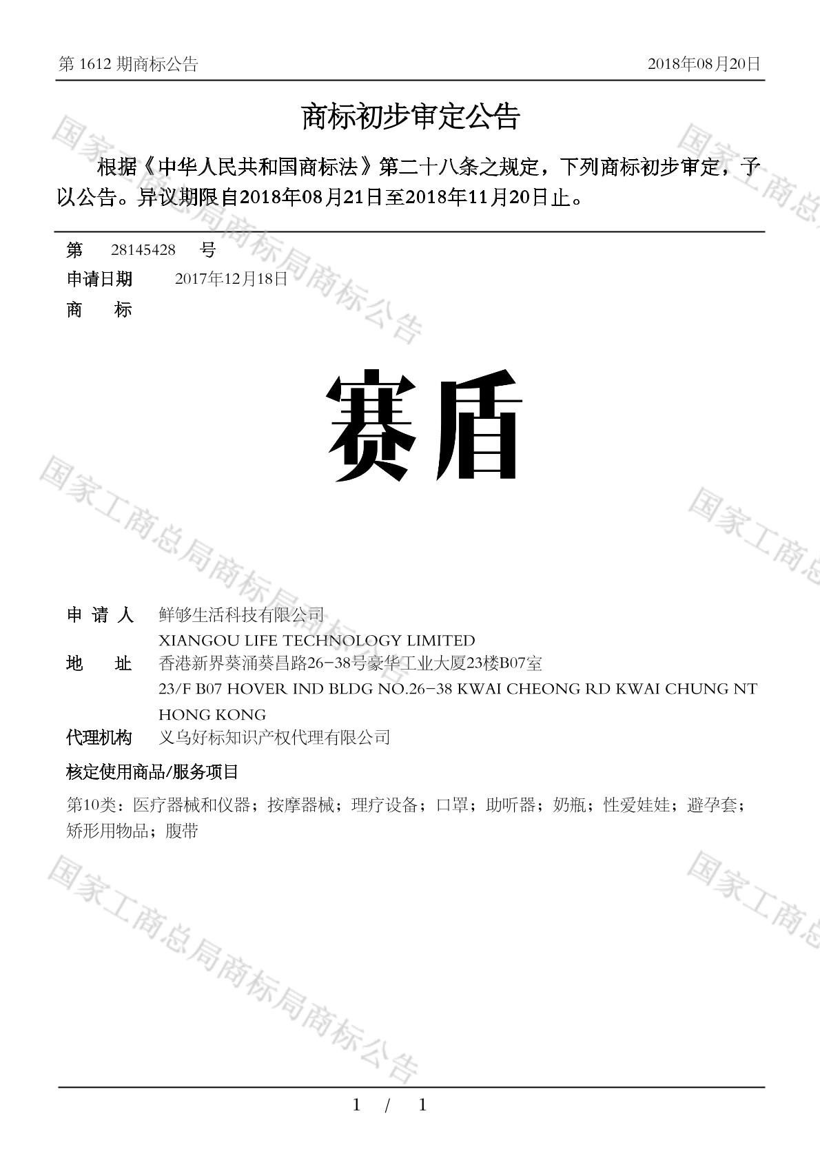 1001-医疗器械和仪器;1001-按摩器械;1003-理疗设备;1004-助听器;1004-口罩;1005-奶瓶;1006-性爱娃娃;1006-避孕套;1008-矫形用物品;1008-腹带 - 1612