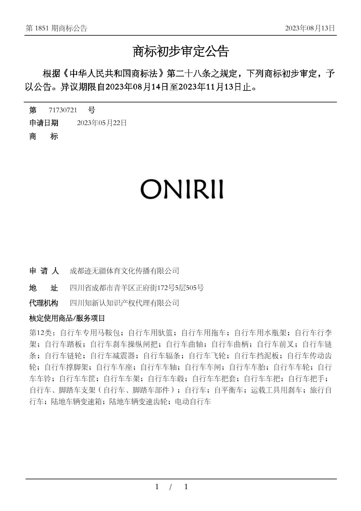 【ONIRII】商标详情
