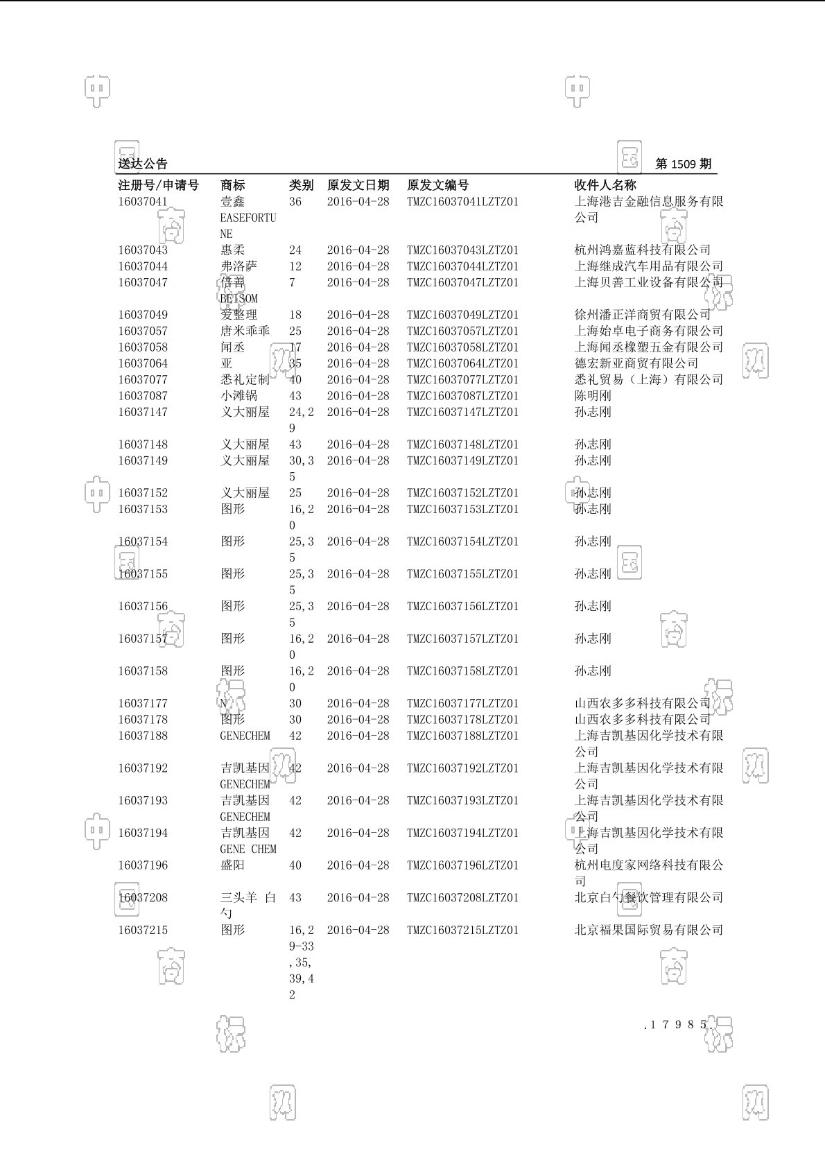 2016-06-23 商标注册申请 | 排版送达公告(领取商标注册证通知书)